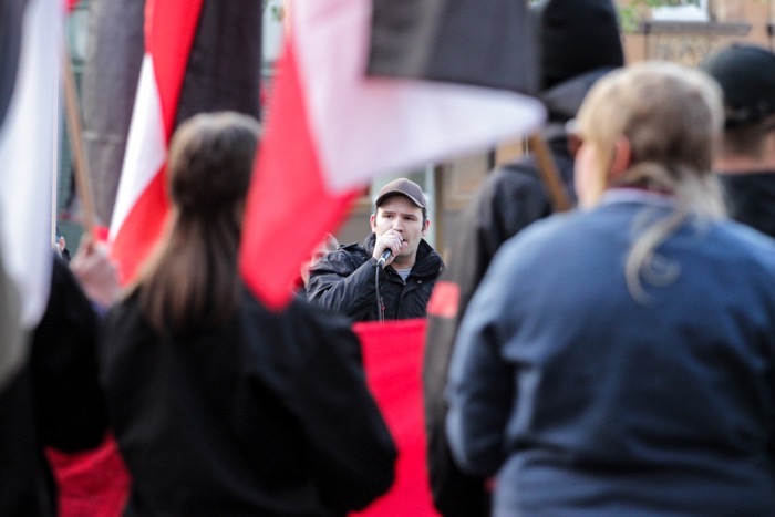 In Mönchengladbach hatte sich der klägliche Rest der nordrhein-westfälischen NPD versammelt: Einige pickelige Jünglinge, Skinheads und ein paar alte Bekannte wie Willibert Kunkel aus Aachen und Stephan Haase aus Lüdenscheid. Kunkel, dem eine erstaunliche Ähnlichkeit zu TV-Anwalt Ingo Lenßen attestiert werden kann, durfte sogar zu seinen Kameraden reden. Haase, der immerhin einst Vorsitzender der NPD-NRW war, lief meist einsam im hinteren Teil der Demonstration.