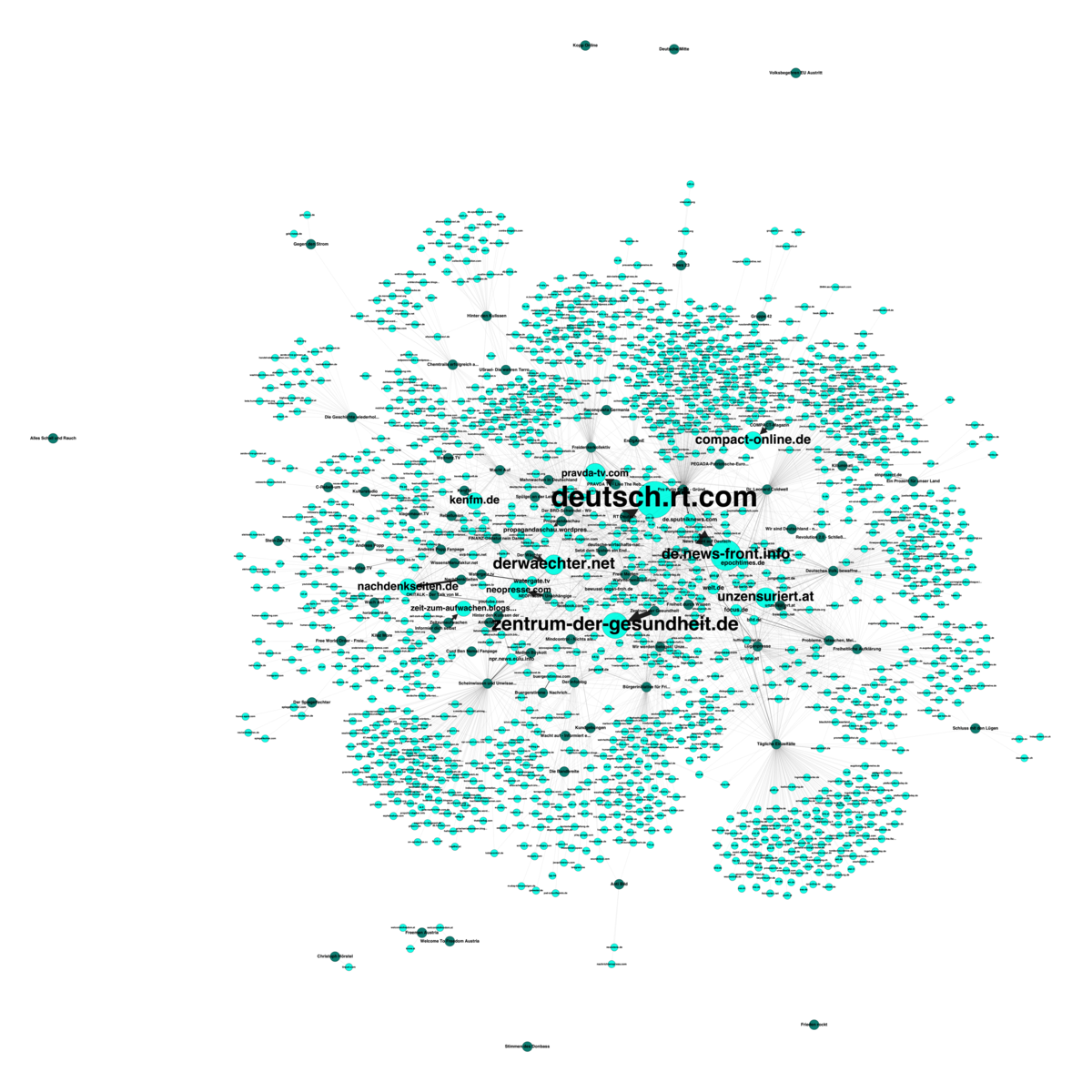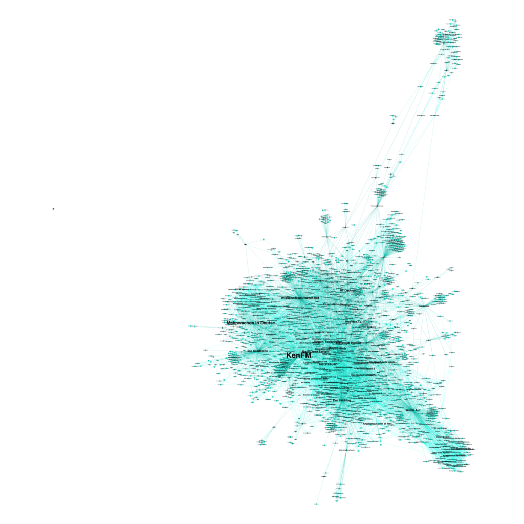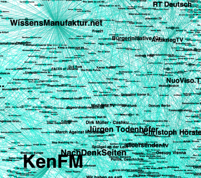 Für mich ergibt sich die Frage ob es sich bei dieser wissenschaftlich angehauchten Arbeit um eine interessante Analyse oder eine interessante "Analyse" handelt. Ich zum Beispiel hab nicht nur Querverbindungen zu ein paar dieser Seiten sondern ich like auch linke und grüne Seiten und Politiker, hab etliche Mainstream-Medien abonniert wie z.B. Die Zeit, Spiegel, Stern und Fokus…
