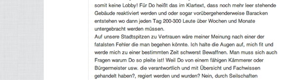 Auch das Infoportal-Dortmund, das zentrale Medium der Nazis, ist mittlerweile unter einem neuen Namen auferstanden: Im Dortmund-Echo wird nun rechtsradikale Propaganda betrieben, wird von Aktionen der Szene berichtet und drohen Kommentatoren damit sich „schwerst bewaffnen“ zu werden: