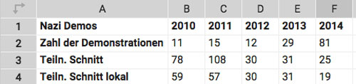 und die Anzahl der Demonstrationen pro Jahr. Die anderen Zahlen sind Murks. Sorry, die Idee war gut, leider wurden die falschen Zahlen angefordert.