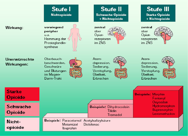 Natürlich ist eine Ursachenbehandlung wünschenswert. Sie ist aber, wie man sehr deutlich an dem zweiten Fall erkennt, leider nicht immer möglich. Wie kann Michael U. von Sucht sprechen? Nach dieser Odyssee mit acht OPs und 30 Ärzten ist es vermutlich aussichtslos die Schäden an seiner Wirbelsäule zu reparieren und die dadurch entstehenden Schmerzen ursächlich zu bekämpfen. Das hat nichts mit Sucht zu tun. Das sind chronische Schmerzen. Und für die Behandlung solcher gibt es die Stufentherapie der WHO. Sie beginnt mit Schmerzmitteln, die keine Opioide sind z.B. Ibuprofen, Diclofenac, Paracetamol oder Metamizol (Novaminsulfon). Reicht dies nicht aus, um die Schmerzen zu beseitigen, werden sie mit schwachen Opioiden wie Tramadol oder Tilidin kombiniert. Das meint die Frau im ersten Fallbeispiel mit “härteres Zeug“. Erst wenn, in der zweiten Stufe keine ausreichende Schmerzreduktion zu erreichen ist, tauscht man das schwache Opioid gegen ein starkes aus. Diese Wirkstoffe aus der Gruppe der starken Opioide unterliegen dann der bürokratisch sehr aufwendigen BTM-Regulierung.