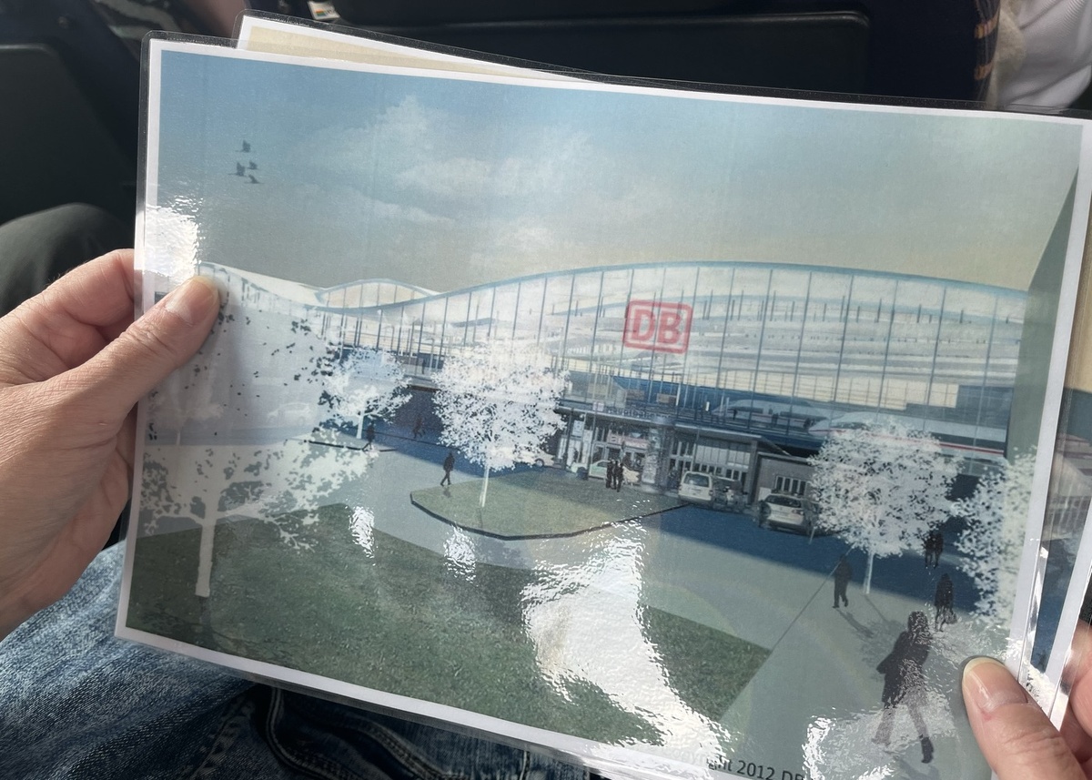 Wie bei den meisten anderen angefahrenen Punkten, reicht Udo Scharf auch hier Fotos rum, die zeigen, wie es früher aussah. Skizzen, die einem eine Vorstellung verschaffen, was geplant ist, gibt es immer dazu.