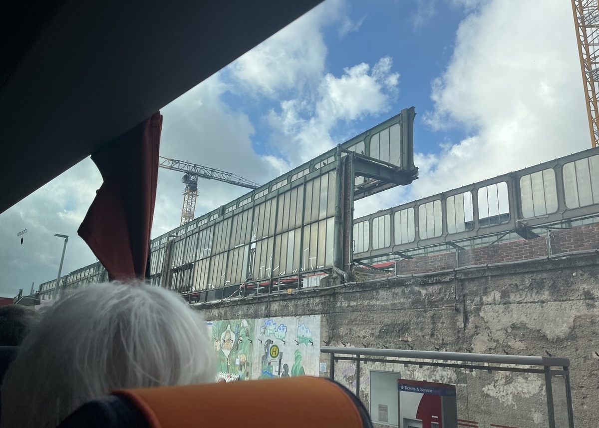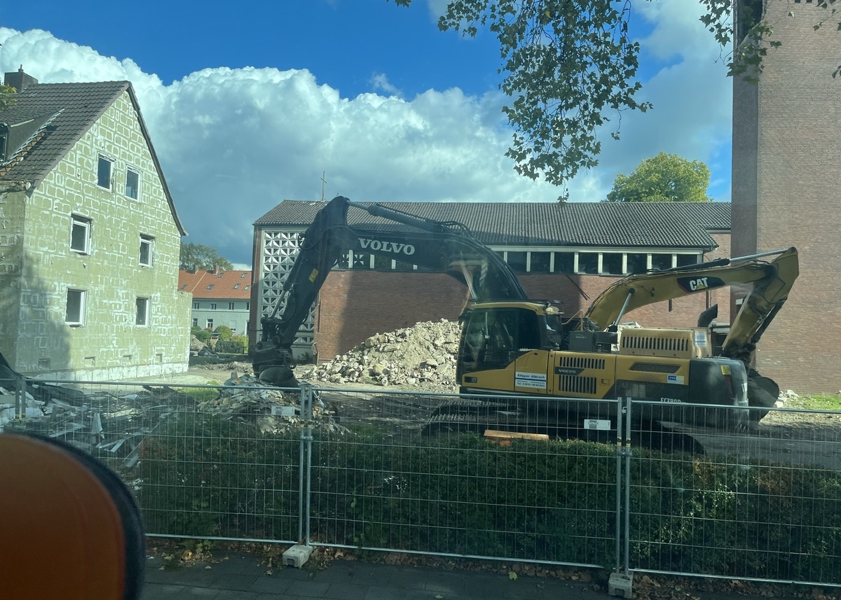 Bereits auf den ersten Metern der Tour erfahren wir, was in unserem Stadtteil (Wanheimerort) gerade so passiert: Da sind zum einen die erneuerten Haltestellen der U-79, die jetzt erhöht sind: Und damit auch für Menschen, die mit Kinderwagen, Rollstuhl oder Rollator unterwegs sind an Attraktivität gewinnen. Bei der Vorbeifahrt am DVG-Betriebshof Grunewald erhalten wir einen Blick auf die neuen Straßenbahnen – und erhalten die Information, dass diese noch nicht in Dienst sind: Weil der Hersteller die technischen Unterlagen noch nicht geliefert hat. Auf dem ehemaligen Gelände der Didier-Werke, gegenüber vom DVG-Betriebshof Grunewald, sind Abrissarbeiten im Gange: Hier entsteht die neue Gesamtschule in Wanheimerort.