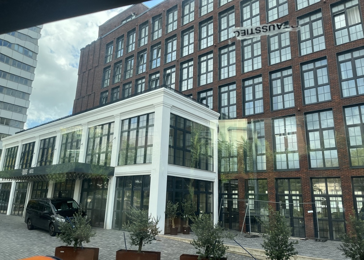 Weiterfahrt über die Schwanentorbrücke, deren vier Türme gerade saniert wurden, kurzer Blick auf das neue Twins-Hotel am Ende des Sonnenwalls. Wir fahren Richtung Musfeldstraße, passieren das Theater am Marientor und das Rotlichtviertel im Bereich der Vulkanstraße, fahren an einem ehemaligen Schlachthof – in dem bisher der Hundesalon Amigo seine Heimat hatte und in dem demnächst ein Kulturzentrum eröffnet – vorbei und kommen auf dem früheren Gelände der Theisen-Kabelwerke an. Auch hier ist Großes geplant!