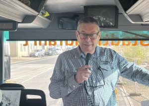 Wortwörtlich bis zum letzten Platz ausgebucht war der Bus, als wir es uns zu dritt am vorletzten Samstag auf den verbliebenden drei Plätzen bequem machten: Startpunkt war die Bushaltestelle am AWO-Seniorenheim in Duisburg-Wanheimerort (Im Schlenk / Ecke Düsseldorfer Straße). Wie bei unserer letzten Tour ist, neben Busfahrer und Guide Udo Scharf, Joachim Schneider als Co-Guide mit von der Partie. Eine gute Wahl: Als stellvertretender Bezirksbürgermeister in Duisburg-Mitte, weiß Joachim Schneider welche Projekte gerade am Start sind – und wie es läuft.