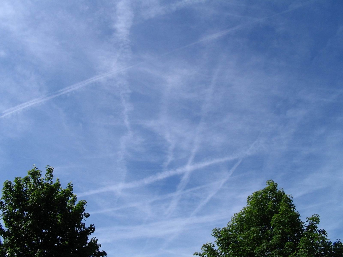 Mit „Chemtrails“ sind die weißen Kondensstreifen gemeint, die Flugzeuge hinter sich herziehen. Da das aber zu einfach wäre, stricken die Chemtrailer eine hübsche Gruselgeschichte rund um die Abgase: Diesen sollen nämlich Chemikalien zugesetzt sein, mit denen die Regierung, oder wahlweise das Militär, das Wetter kontrollieren könne. Natürlich wollen die uns nichts Gutes, und so sinniert „Sauberer Himmel“: