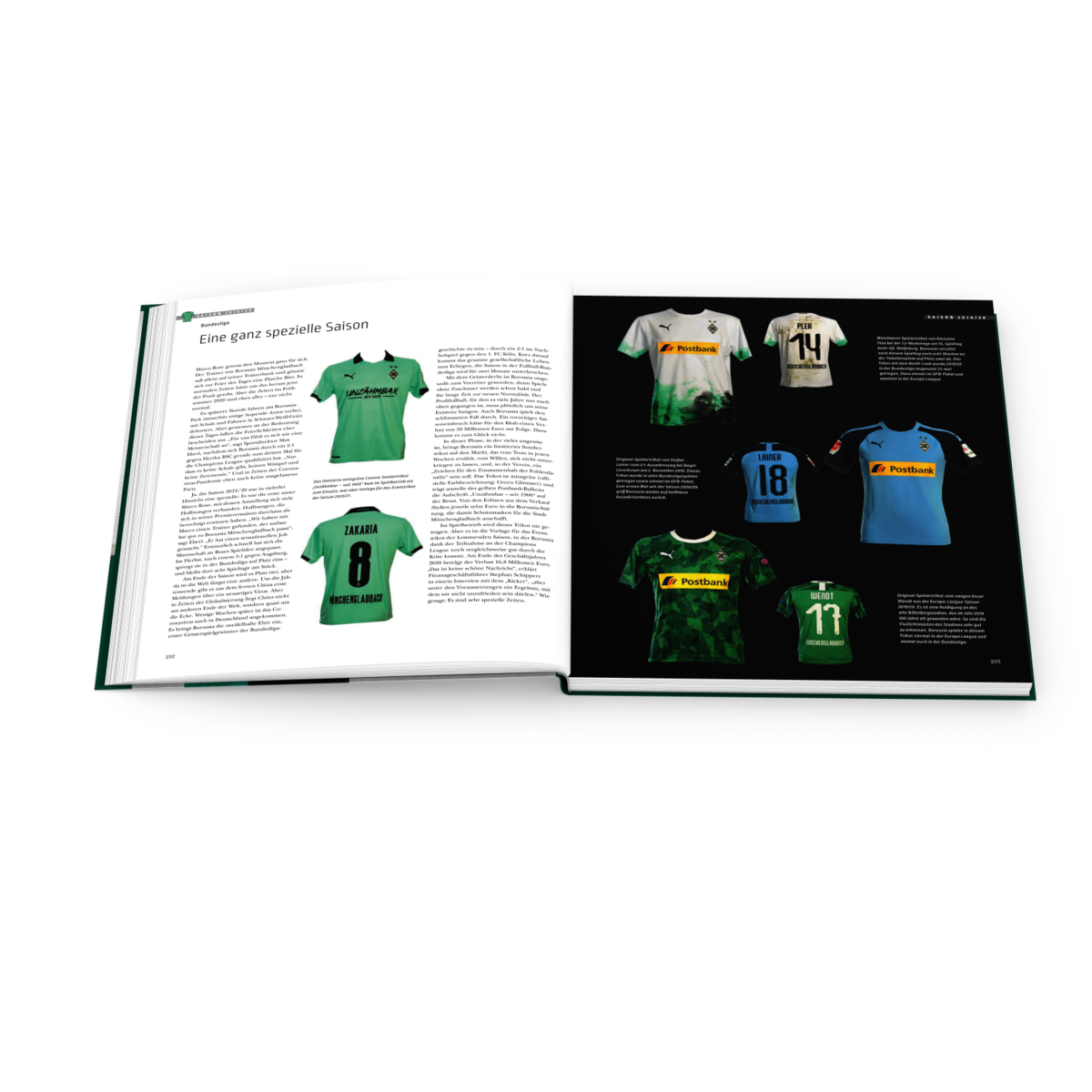 Ihre Zeitreise in die über 120 Jahre lange Trikotgeschichte von Borussia Mönchengladbach – von der Gründung bis heute, ist dabei am Ende zwar nicht ganz so umfangreich ausgefallen, wie das Werk über den Rekordmeister von der Isar, doch erklären auch hier die Macher auf immerhin über 250 Seiten ausführlich, wie sich die Jerseys der Borussia vom Niederrhein im Laufe der Jahrzehnte entwickelt haben.