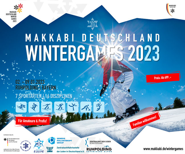 Es ist soweit: Nach über 85 Jahren bringt MAKKABI Deutschland den Winter Sport zurück in die jüdische Sportwelt. Vom 02. – 09. Januar 2023 finden die ersten MAKKABI Deutschland WinterGames im idyllischen Ruhpolding statt. 350 Teilnehmer*innen aus der ganzen Welt und 100 Volunteers werden diese historische Veranstaltung mit Leben, Sport und der vielbewährten Makkabi-Atmosphäre füllen.
