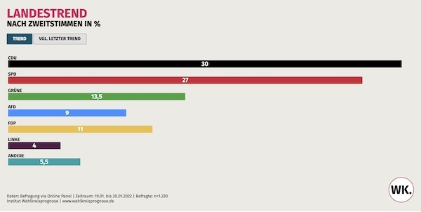 Bei den Umfragen zur Landtagswahl, wer welche Partei wählen will, sieht es aber noch so aus, dass eine Ampel wohl die Mehrheit hätte. Wenn die Ampelparteien wirkich vor haben, ihre Agenda durchzubringen, sollten Sie auf jeden Fall versuchen, die Stimmen von NRW für den Bundesrat zu sichern. Im Laufe des Jahres könnten noch in Schleswig-Holstein und im Saarland die Regierungen sich ändern und im 2023 in Hessen. Eine Mehrheit im Bundesrat ist also alles andere als unwahrscheinlich, wenn man sich einigermaßen ordentlich anstellt und den Willen dazu hat. Wenn die FDP oder die Grünen aber den Fehler begehen, Herrn Wüst an der Macht zu halten, kann die Ampel eigentlich gleich aufhören. Meine Prognose daher, der nächste NRW MP wird Herr Kutschaty. Und wenn er mal den Job hat, wird er ein sehr beliebter Landesvater, da er ein glaubafter Sozialdemokrat ist und bei den Menschen an Rhein und Ruhr gut ankommen wird.