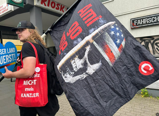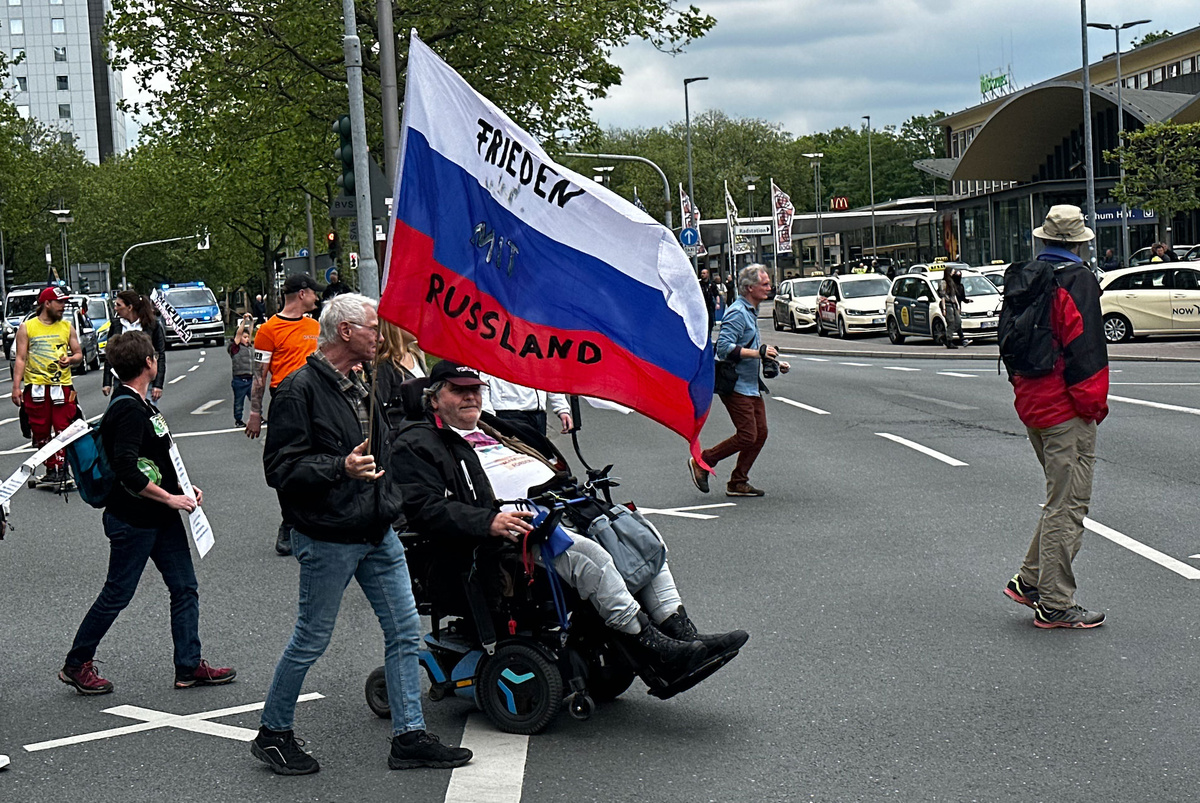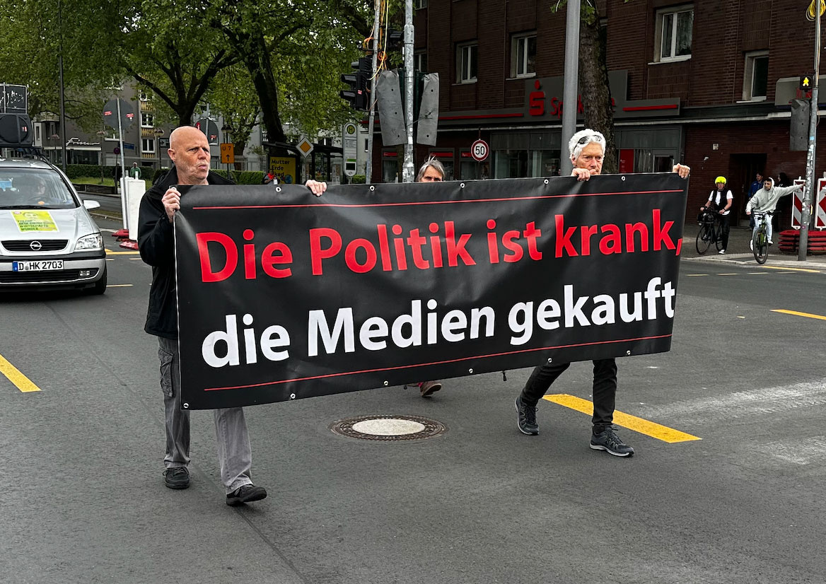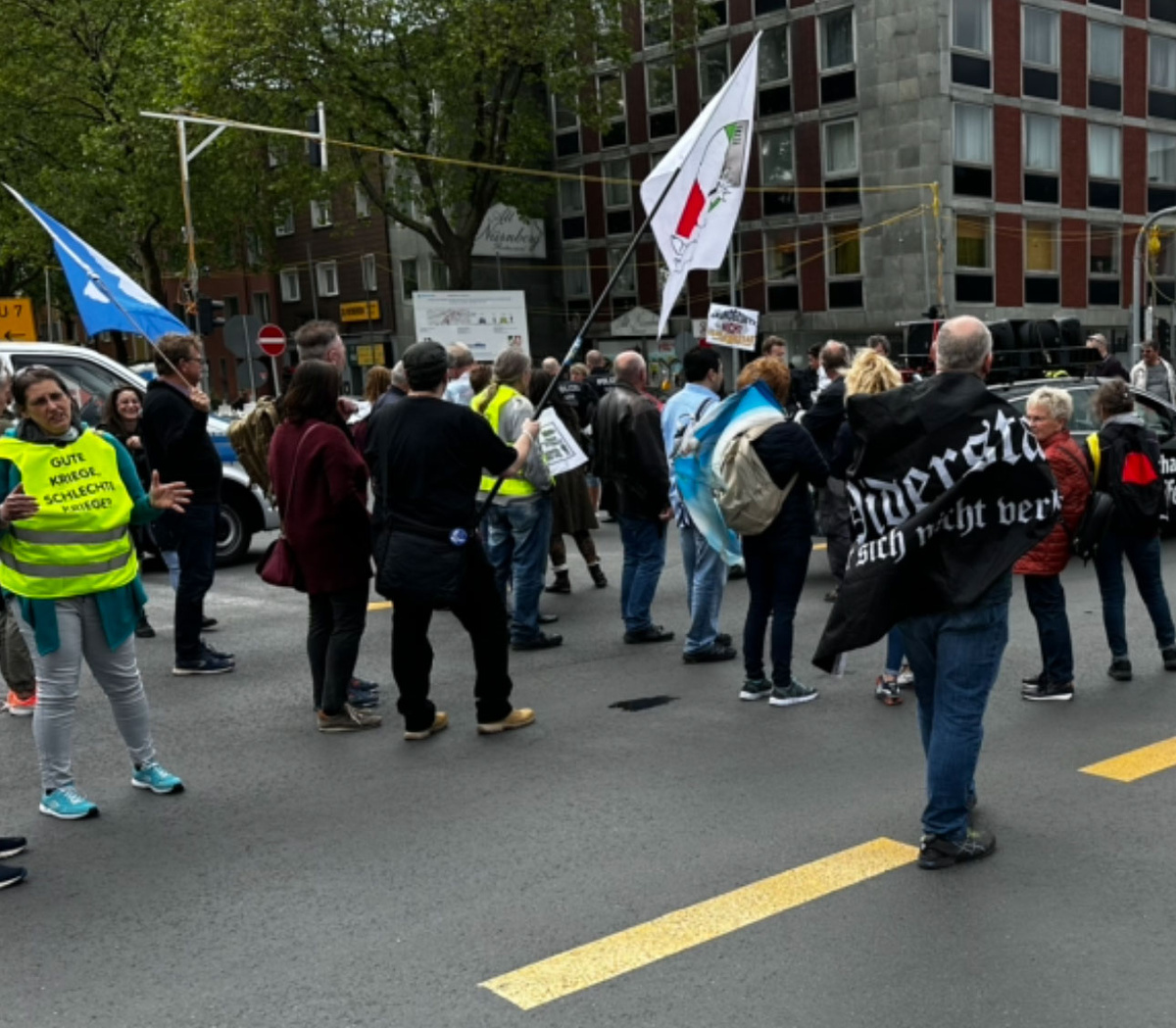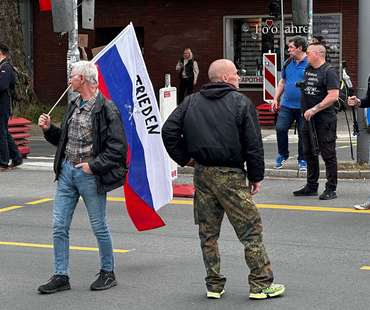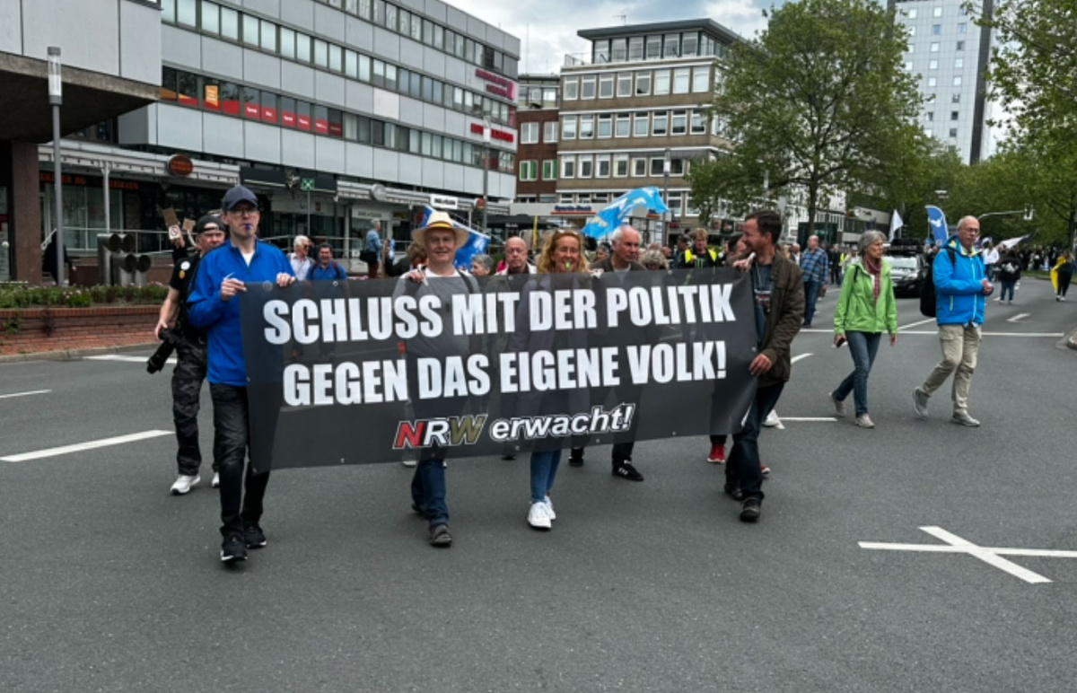 Unter dem Motto NRW erwacht, das sicher nicht zufällig an die NSDAP-Parole „Deutschland, erwache!“ erinnert, finden seit Monaten Demonstrationen in NRW statt. Es sind die Reste der Querdenkerszene, die noch Anfang 2022 Tausende auf die Straße brachte und sich nach und nach dem Thema Frieden zugewandt hat. Dass unter den 300 Demonstranten auch ein paar Neonazis dabei waren, stört hier niemanden. Wer gegen den Westen und die USA ist und sich einen Frieden auf Kosten der Ukrainer wünscht, ist unter den „Herzmenschen“, wie sich die Demoteilnehmer selbst bezeichnen, willkommen. Und da in Bochum die demokratischen Parteien nicht an der Gegenkundgebung am Bergbaumuseum teilnahmen, von wo aus der Zug von NRW erwacht losging, sondern vor der Christuskirche protestierten, kam es zu absurden Szenen: Als Redner davon sprachen, junge Ukrainer würden in dem Krieg für westliche Oligarchen sterben, auf Plakaten das Ende der NATO gefordert wurde und überall Friedensfahnen wehten, wurden sie von Gegendemonstranten als Nazis beschimpft. Zumindest den Dagdelen-Linken unter ihnen dürften solche Parolen von Ostermärschen und Friedensdemonstrationen bekannt vorgekommen sein. Die Warnung vor einem Konzentrationslager Bundesrepublik, die der Bochumer Arzt Andreas Triebel aussprach, zeigte dann allerdings, dass sich bei NRW erwacht der Bodensatz der schon bodensätzigen Friedensbewegung mit Rechtsradikalen, Querdenkern und einfach nur verwirrt wirkenden Menschen gemischt hatte.
