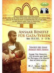 Der salafistische Hilfsverein Ansaar International e.V. aus Düsseldorf ist offensichtlich unbeeindruckt von der Ankündigung des NRW-Innenministers Ralf Jäger, den Fokus der Sicherheitsbehörden in Zukunft auf die Bekämpfung des gewaltbereiten Salafismus zu legen. Ansaar-Chef Joel Kayser, ein ehemaliger Hip-Hop Sänger, kündigte letzte Woche selbstbewusst auf YouTube eine Benefizveranstaltung für Syrien an. Sie sollte gestern im benachbarten Bundesland stattfinden. Ansaar ist beim Spendensammeln besonders erfolgreich: Im letzten Jahr sammelte der Verein allein für die Krisenregionen Gaza, Syrien und Somalia über 1,3 Millionen Euro ein. Zu dem Wohltätigkeitsevent in Niedersachsen waren zwei der bekanntesten Hassprediger eingeladen: Die Salafisten Abu Baraa und Shaik Abu Anas.