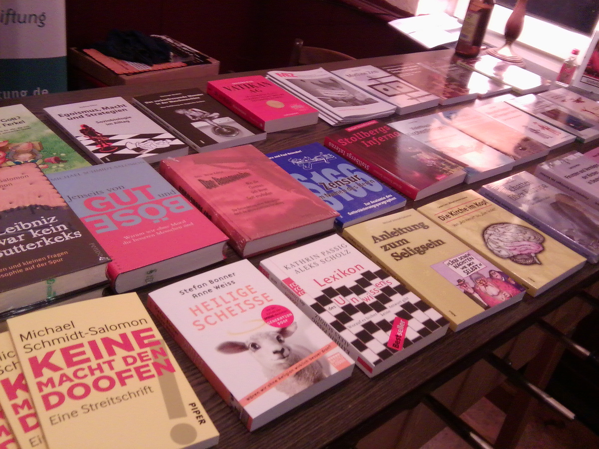 Auf mehreren Info-Tischen wurden Infos zur Konfessionslosigkeit und Aufklärung angeboten.