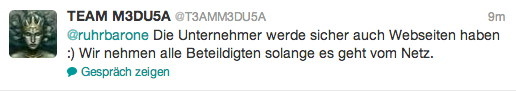 […] M3DU5A hält Wort: Nachdem das gestern bereits durch eine DDoS-Attacke lahmgelegte peerblog heute kurz online war ist es nun wieder nicht […]