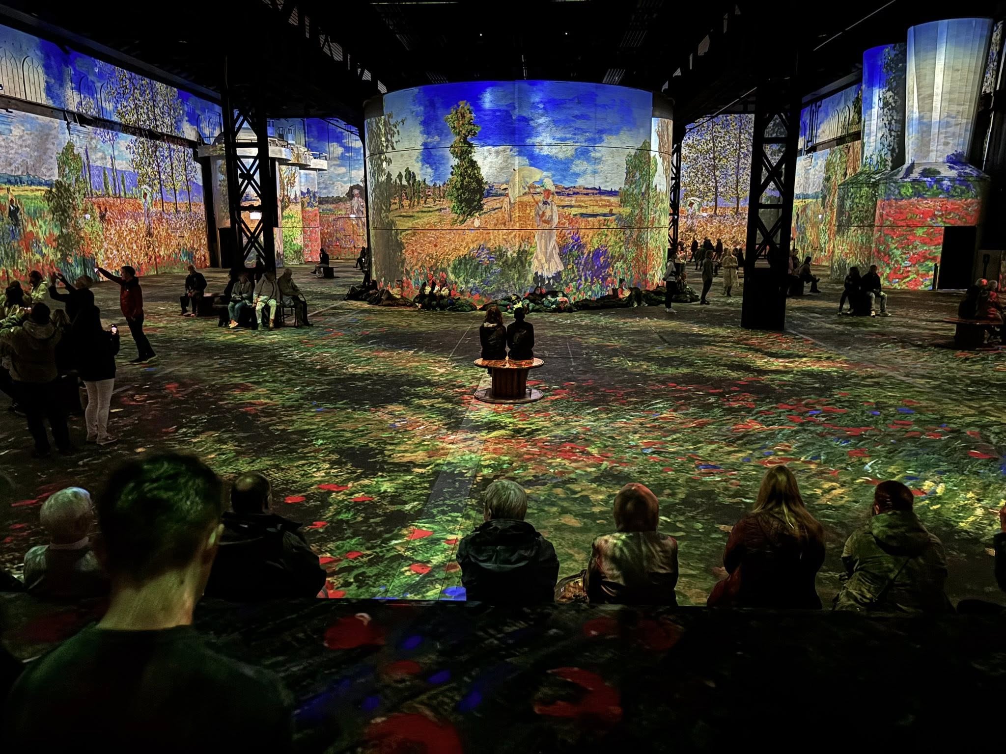 Zuerst entführt einen die Ausstellung in die Welt von Claude Monet. Seine berühmten Seerosen, Kathedralen und Gartenlandschaften erscheinen nicht nur an den Wänden, sondern auch auf dem Boden – man steht mitten im Bild. Die feinen Pinselstriche, die man aus Museen kennt, beginnen sich zu bewegen, das Licht flimmert, und die Musik verstärkt die Wirkung. Es ist, als würde man für einen Moment in Monets Kopf schauen und die Welt so sehen, wie er sie gemalt hat: voller Licht, voller Leben.