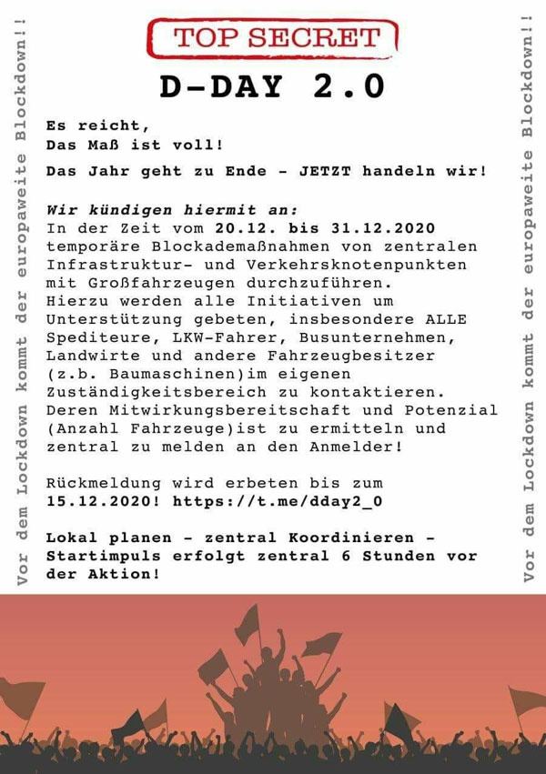 Für die Zeit zwischen dem 20. und dem 31. Dezember rufen die Aktivisten zudem zu Blockaden auf: