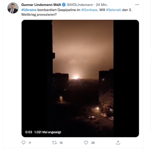 Gunnar Lindemann, Mitglied des Berliner Abgeordnetenhauses, fantasiert von einem ukrainischen Bombenangriff auf eine Gaspipeline: