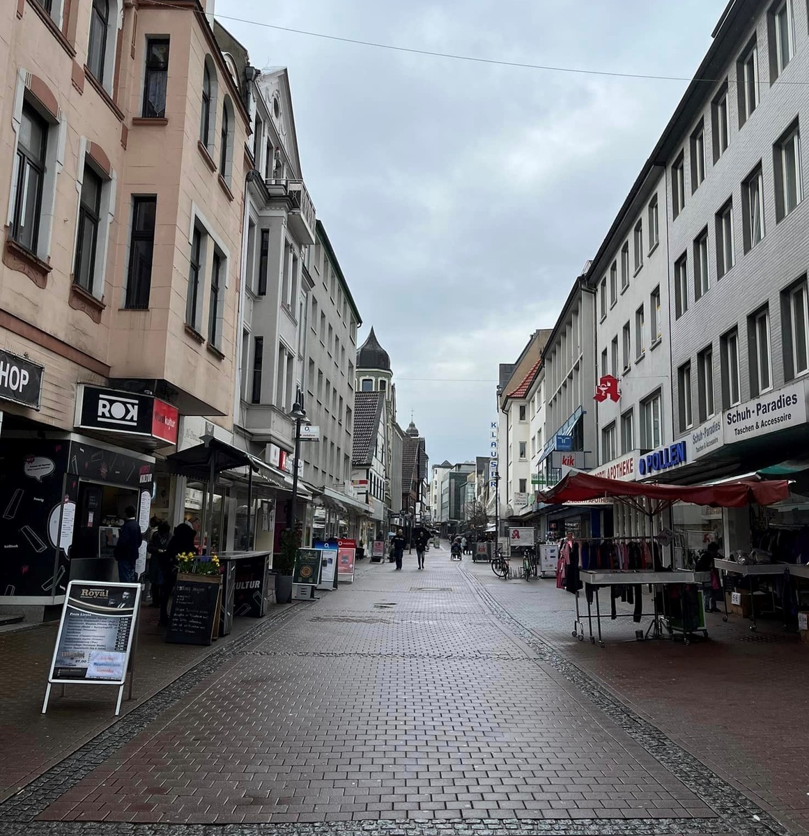 Allerdings war bzw. ist das nur vordergründig der Fall. Denn was dort zu finden war, waren überwiegend ‚Notlösungen‘. Pflegedienste, diverse Büros und Sozialkaufhäuser waren in ehemaligen, einst vielfach noch inhabergeführten Geschäften zu sehen. Auffällig auch eine immense Anzahl von ‚Barbershops‘, die ich in dieser hohen Zahl so auch noch nirgendwo gesehen habe. Wirklich attraktive neue Angebote habe ich bei meinem Gang durch die Altstadt nicht entdeckt. Zumindest eben nicht für mich. Aber immerhin, der rasante Niedergang der Vergangenheit erschien erscheint erst einmal gestoppt.