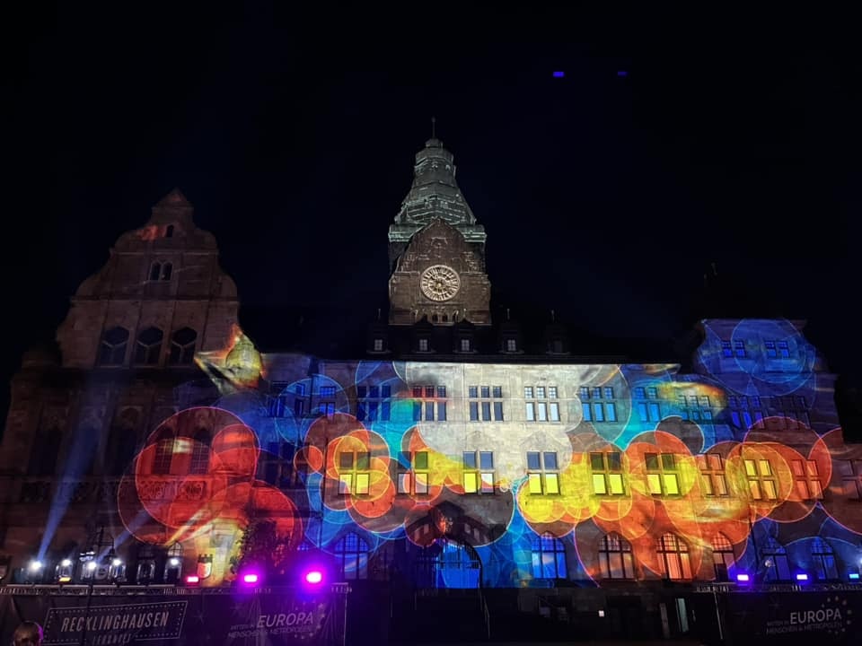 Mein Besuch dort am Dienstag war der erste seit Jahren, der einen anderen, einen durch und durch erfreulichen Grund hatte. Nachdem ich mich hier bei den Ruhbaronen in den vergangenen Wochen schon mit den Lichfestspielen beim Herbstleuchten in Hamm und dem neuen Angebot von Phoenix des Lumières in Dortmund befasst habe, wollte ich mir jetzt endlich auch einmal ‚Recklinghausen leuchtet‘ mit eigenen Augen ansehen. Und um es vorweg zu nehmen: Es hat sich durchaus gelohnt!