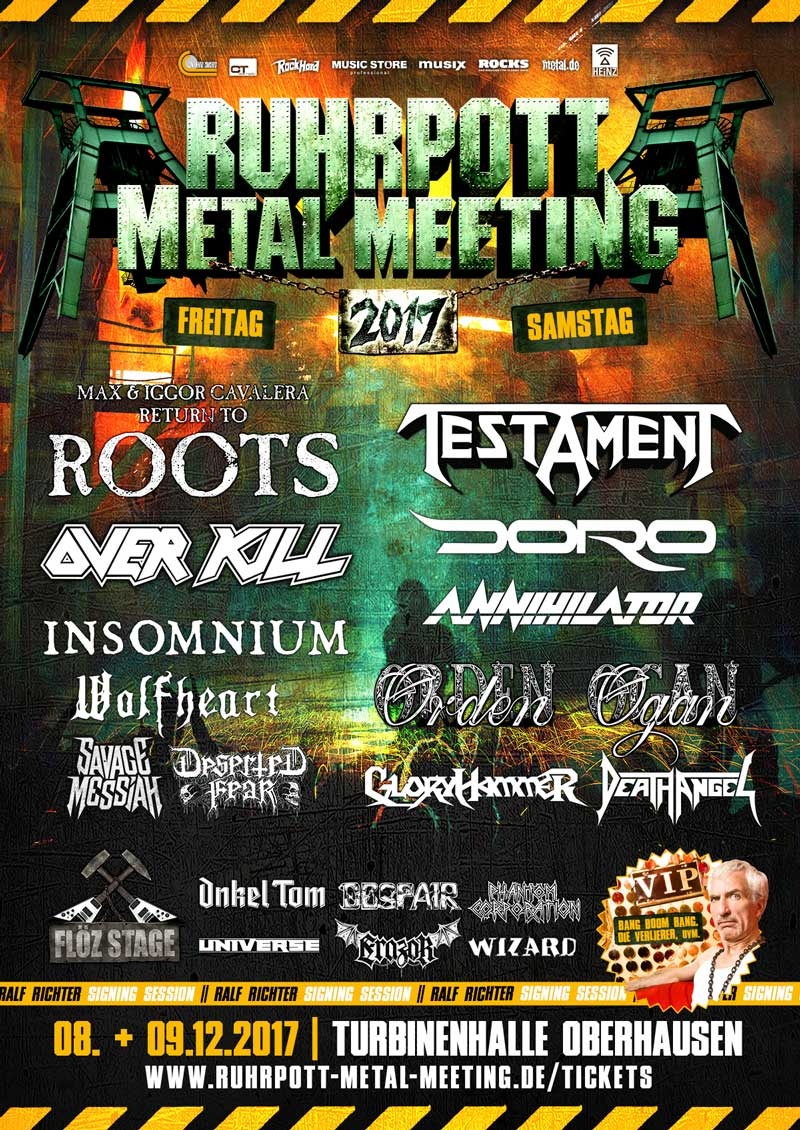 Das RUHRPOTT METAL MEETING, das bereits zum dritten Mal, am 08. und 09. Dezember, stattfindet, avanciert zum Festival Hightlight 2017. Zwei Tage lang wird die Oberhausender Turbinenhalle wieder zum Schauplatz des größten Indoor-Metal-Festivals im Revier.