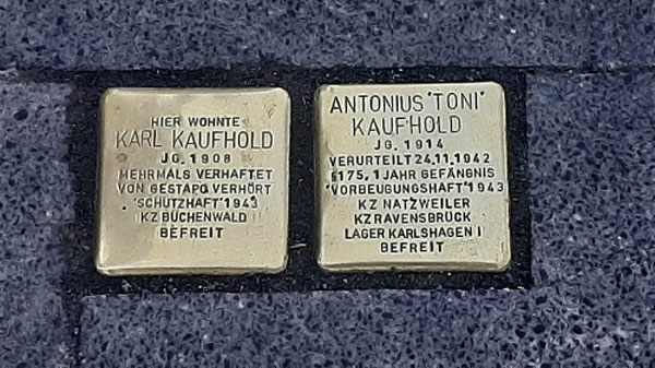 Voraussichtlich in einem Jahr wird am gleichen Ort noch ein dritter Stolperstein hinzu gefügt, für Johann Kaufhold. Der 1902 Geborene wurde schon 1933 aus rassistischen Gründen aus seinem Beruf bei der Post hinausgeworfen. 1939 floh er in die Niederlande. Die Gestapo beschuldigte ihn bei den Prozessen gegen seine Brüder, Juden nach Holland geschmuggelt zu haben. 1940 kam er in das Durchgangslager Westerkork. 1942 kam er frei und kehrte Ende 1945 nach Essen zurück.