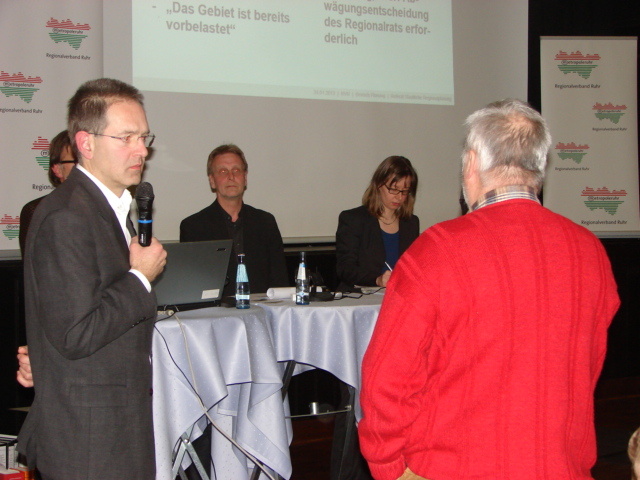 Der RVR zeigte nach außen seinen guten Willen zum Dialog mit den Bürgern vor Ort, denn wie Martin Tönnes gleich mehrfach betonte, war diese Veranstaltung nicht vorgeschrieben, es sei eine freiwillige Aktion des RVR um die Transparenz des Verfahrens zu erhöhen. Eine wirkliche Diskussion war es dabei aber nicht. Beide Seiten trugen lediglich ihre festen Standpunkte (noch einmal) öffentlich vor.