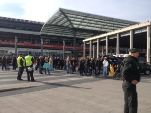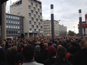 15.36 Uhr: „Es ist eine riesige, riesige Menge…“ so beschreibt gerade einer unserer Leute vor Ort den Demonstrationszug der Neonazi Hools, der sich gerade in Bewegung gesetzt hat. Und immer noch ist kaum Polizei zu sehen… Auch nicht vor dem Bahnhof, wo es um die 1000 Menschen sind, die gegen die Mischung aus Hooligans und Nazis protestieren…