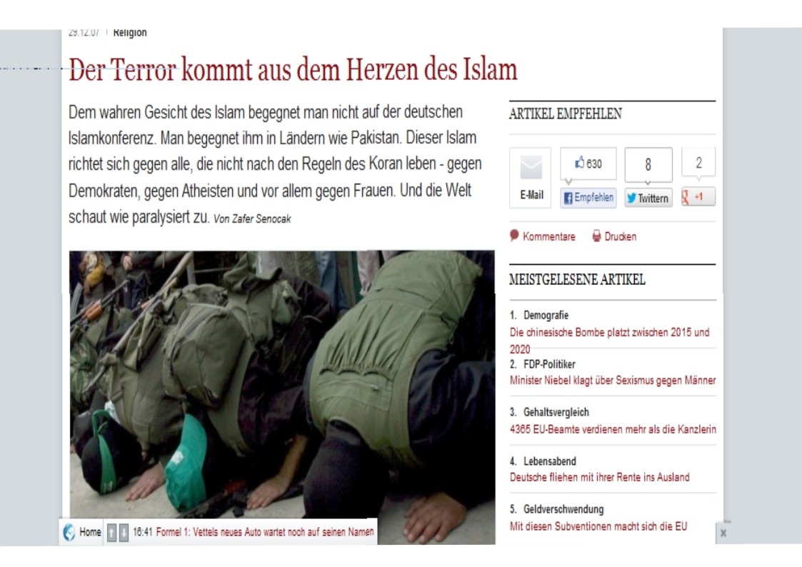 Die Headline: Verkürze Zusammenhänge. Vergiss nicht, schon in der Überschrift klar zu machen, dass es nur „den Islam“ gibt und dafür zu sorgen, dass in Großbuchstaben Ausdrücke wie Gewalt, Krieg oder Kampf fallen. Nützlich sind vor allem Begriffe mit negativen Konnotationen. Die verschaffen dir und deiner Meinung die notwendige Aufmerksamkeit. Ignoriere, dass Begriffe historisch gewachsen sind oder je nach Kontext andere Bedeutungen haben. Du bist hier der Experte und weißt, wovon du sprichst.