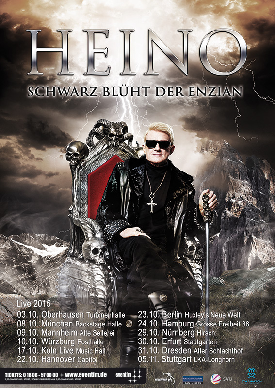 Tourauftakt ist der 3.10.2015 in der Turbinenhalle in Oberhausen und Karten für das Rockspektakel sind nach wie vor erhältlich bei Eventim und im „heino-eigenen“ Ticketshop.