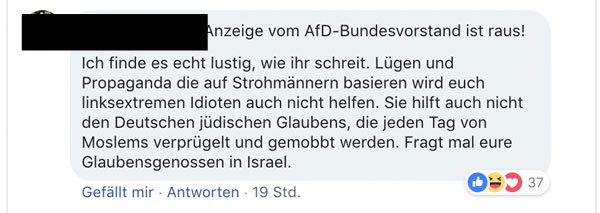 Anlass ist die geplante Gründung eines jüdischen Arbeitskreises in der rechtsradikalen Partei. Die Reaktion aus den Kreisen der AfD-Anhänger: Ein Shitstorm gegen den Zentralrat und die jüdischen Organisationen in Deutschland auf Facebook, der zeigt, wie richtig sie mit ihrer Stellungnahme lagen: