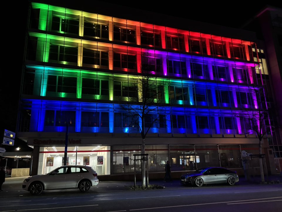 Hochschule wird auch beleuchtetZu den erfreulichen Tendenzen bei „RE leuchtet“ zählt zweifelsfrei aber auch die behutsame Expansion aus der Innenstadt hinaus: So erstrahlt das Knappschaftskrankenhaus nun schon seit einigen Jahren in bunten Farben – als auch von der Autobahn sichtbares Zeichen für die Veranstaltung. Und auch die Westfälische Hochschule war nun schon zum dritten Mal beleuchtet und vor allem: Gastgeber von „Comedy meets Campus“, einem launigen Event, das längst allergrößte Beliebtheit erlangt hat.