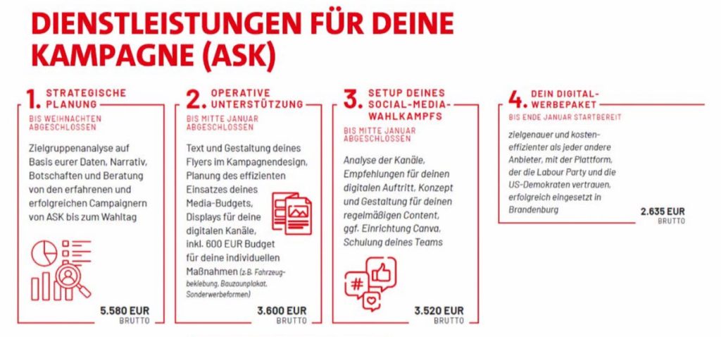 Aber natürlich haben auch die Sozialdemokraten mittlerweile das Internet für sich entdeckt. Mehr noch, sie wollen „zurückgewinnen“, gerade so, als ob es einmal in ihrem Besitz gewesen wäre. Das ist niedlich, keine Frage. Die Zentrale bietet den Kandidaten für ihren Online-Wahlkampf zudem eine eigene Plattform an, mit der sie effizient digital werben können. Da das von der SPD genutzte Tool auch von den US-Demokraten eingesetzt wurde, wird es den CDU-Wahlkämpfern kaum den Nachtschlaf kosten. Für die Kandidaten, die es nutzen, ist es allerdings kein preiswertes Vergnügen:
