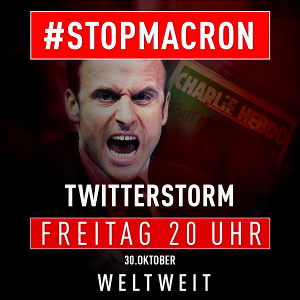 Keine 24 Stunden nachdem eine Islamist in Nizza drei Menschen ermordet und dabei eine 70jährige Frau in einer Kirche den Kopf abgeschnitten hat, wollen heute Abend Islamisten im Internet demonstrieren. Nicht gegen die Gewalt, nicht für die Opfer des Anschlags, sondern gegen den französischen Präsidenten Emmanuel Macron, weil er sich zu den Werten der Aufklärung bekannte und sich für das Recht des Satiremagazin Charlie Hebdo einsetze, Mohammed-Karikaturen zu zeigen. An dem „Twitter-Storm gegen Macron unter dem Hashtag #StopMacron beteiligen sich unter anderem die deutsche Generation Islam und der Islamische Zentralrat der Schweiz.