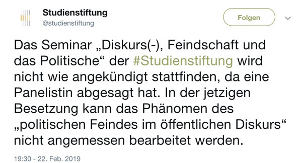 @Pia Reinhardt: ich glaube das war nur ein Vorwand – mittlerweile hat die Stiftung die Einladung von Kubitschek als Fehler bezeichnet.