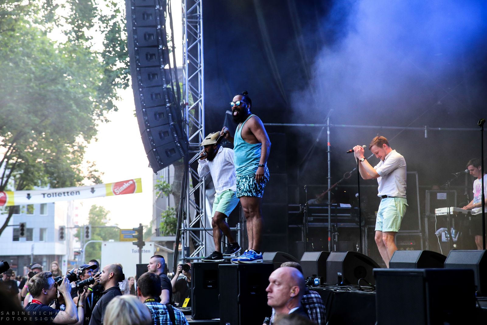 Timon-Karl Kaleyta, Jerome Vazhayil und Jobin Vazhayil, die drei Sänger, Frontmänner und im wahrsten Sinne des Wortes Rampensäue der Band, verwandelten die Area rund um die 1LIVE Bühne im Handumdrehen in eine Partyzone. Ihr drittes Album „Welt verhindern“ ist seit knapp über einem Jahr auf dem Markt und wir warten gespannt auf den Nachfolger!