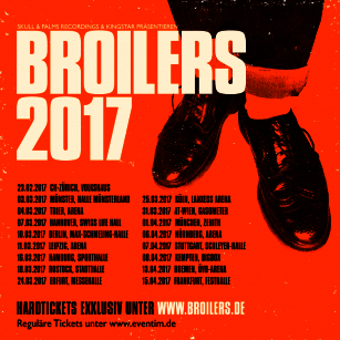 Die Broilers gehören spätestens seit der 2014 erfolgten Veröffentlichung ihres Nummer-Eins-Albums „NOIR“ zu den erfolgreichsten Gruppen des deutschen Sprachraums. Der Longplayer wurde für seine Verkäufe ebenso wie das vorangegangene Epos „Santa Muerte“ mit einer Goldauszeichnung geehrt. Die anschließende Tournee dauerte bis in den Herbst 2015, über 150.000 Fans waren bei den fast überall ausverkauften Konzerten am Start. Allein in ihrer Heimatstadt Düsseldorf feierten mehr als 20.000 Fans an zwei aufeinanderfolgenden Abenden mit der Band.
