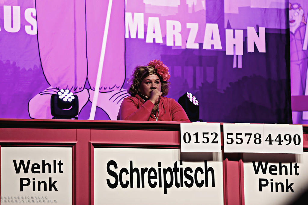 Wie sehr Deutschlands meistbeschäftigte Langzeitarbeitslose mit ihren Themen den Nerv trifft und zur Identifikationsfigur wird, zeigte ein Blick in die Runde. Da waren Frauengrüppchen mit pinkfarbenen Leuchtkrönchen zu sehen. die einen oder anderen auch mit einem Gläschen Sekt zu viel in der Krone. Manche hatte sich in einen pinkfarbenen Jogginganzug geschmissen und rosa Strähnchen im Haar.