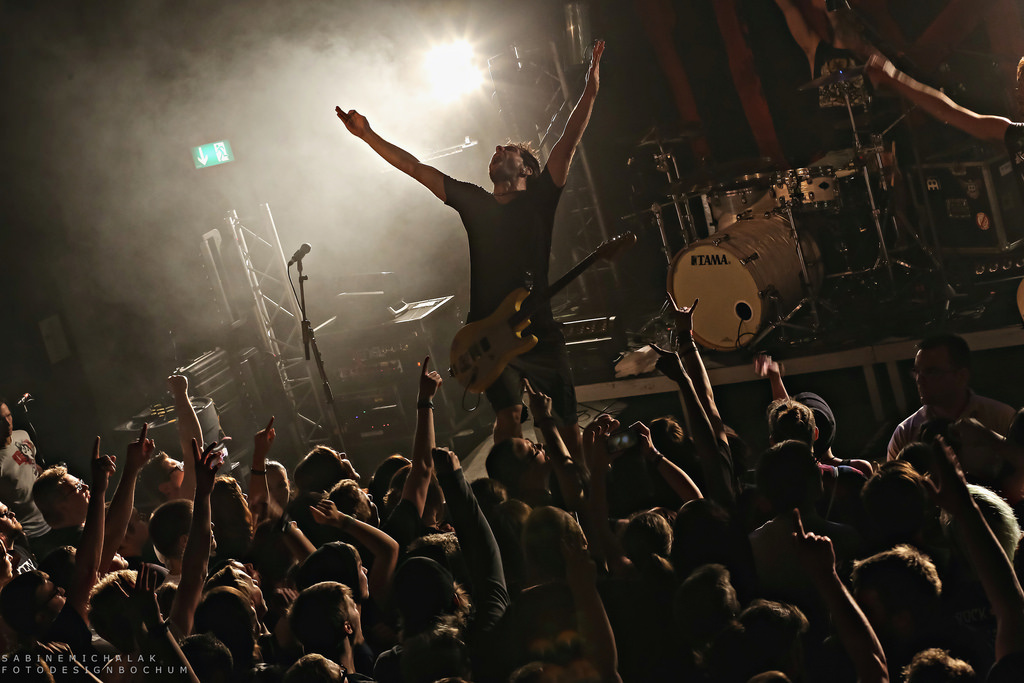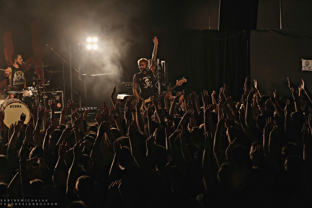 Mit ihrem Vorgängeralbum “Ghost Empire” schafften Caliban es vor genau zwei Jahren auf Platz 7 der deutschen Album-Charts und auch das neue Album „Gravity“ kommt mit dem bewährten Mix aus melodischen und harten, teils aggressiven Teilen und viel „Geschrei“daher, wobei sich Energie und emotionale Parts die Waage halten. Wer also harte Gitarrenmusik mag, kommt an den fünf Jungs aus dem Ruhrgebiet nicht vorbei. Zimperlich darf man dabei allerdings nicht sein. Konzerte von Caliban sind laut, mit viel Körperkontakt und immer in Bewegung. Wer am Samstagabend im Turock in den ersten Reihen stand, hatte gut zu tun. Crowdsurfing und Stagediving gaben sich sozusagen die Klinke in die Hand. Es gab wohl niemanden, der nicht einmal von der Bühne zurück in die Arme der Menge sprang, aber Dörner schaffte es galant, neben seiner selbst schon mitreißenden Performance, der Fluten Herr zu werden, die seine Bühne stürmten. Kurzum, die Hütte wurde von beiden Seiten gnadenlos “abgerissen”, die Stimmung war großartig, die Musik sowieso! Ein Abend, an dem beide Seiten alles richtig gemacht haben, tolle Fans und eine Band, die alles gegeben hat.