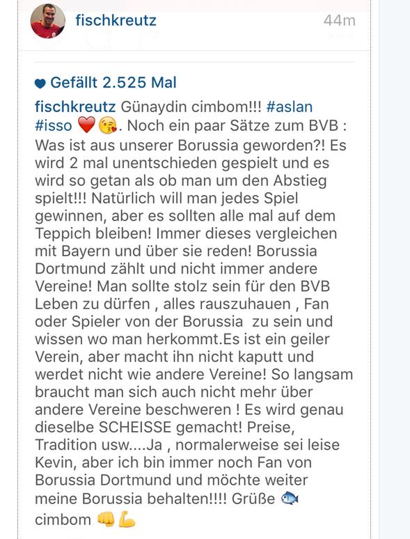 Der von Thomas Tuchel zunächst sportlich in die zweite Mannschaft des BVB degradierte und dann zu Lukas Podolski in die Türkei gewechselte Mittelfeldakteur, der im Herzen nach eigenem Bekunden, noch immer glühender Anhänger der Schwarzgelben ist, sorgt sich offenkundig aktuell sehr um seinen alten Verein.