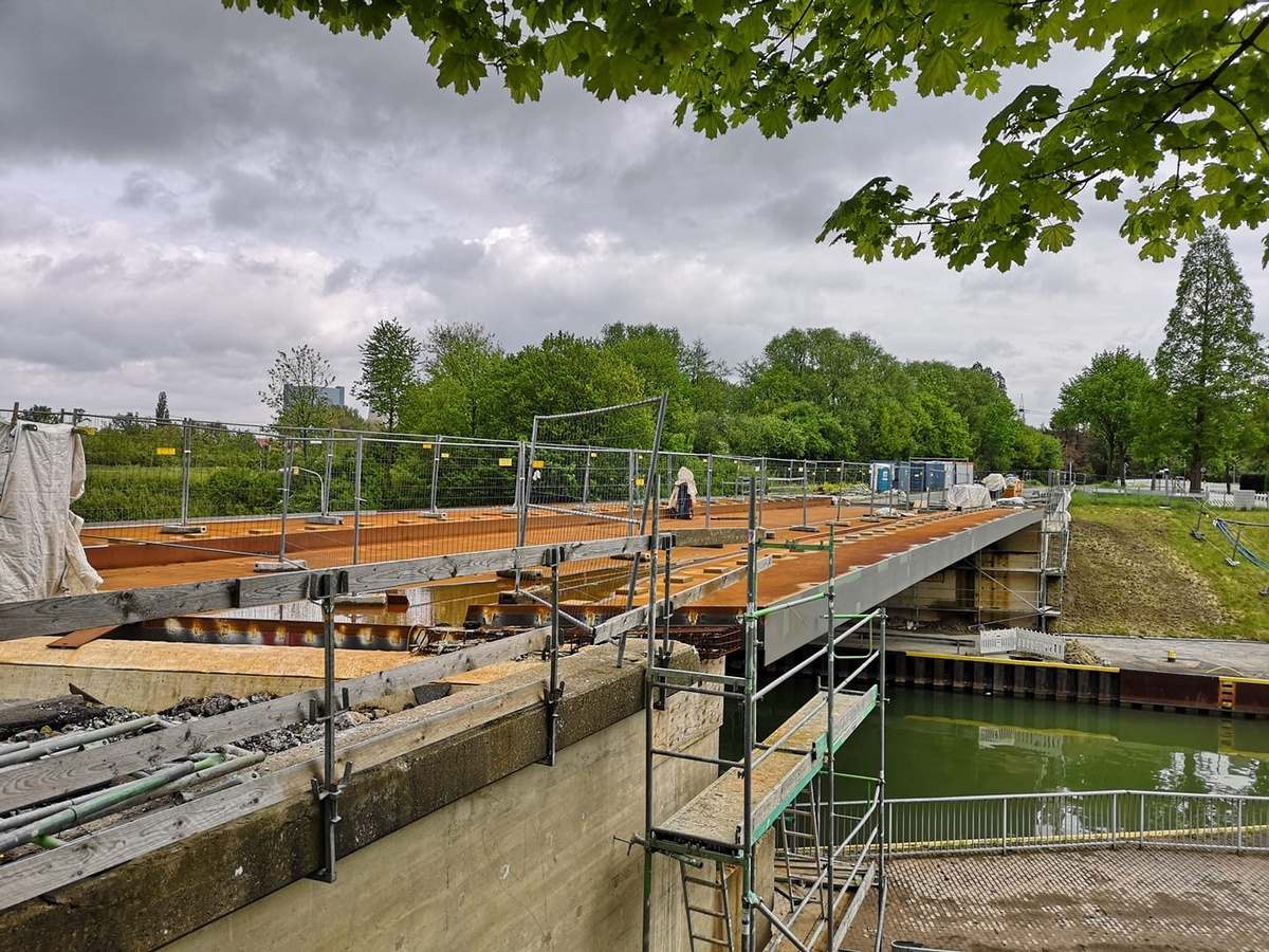 Als es nach einem Jahr Bauzeit noch immer keine befahrbare neue Brücke gab, der Verkehr die neuralgische Stelle nicht passieren konnte, feierten die Bürger im Sommer 2018 sarkastisch ein ‚Brückenfest‘, wohl in der Hoffnung dem verantwortlichen Wasserstraßen- und Schifffahrtsamt in Duisburg (und dem von ihm beauftragten Unternehmen) Beine machen zu können.