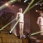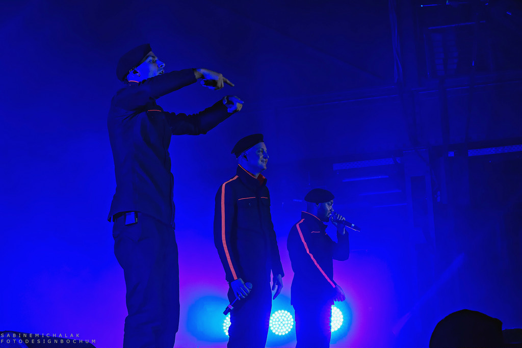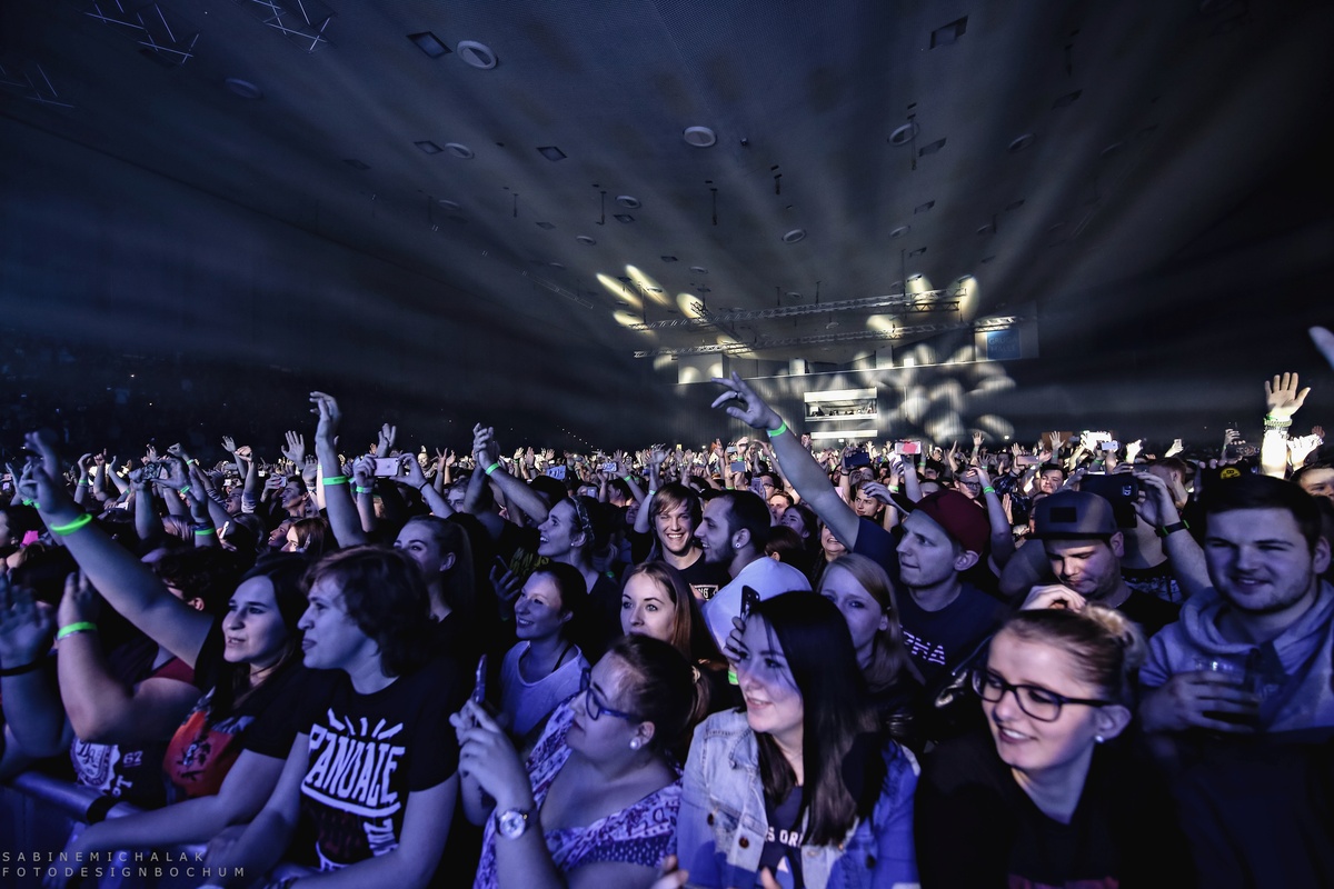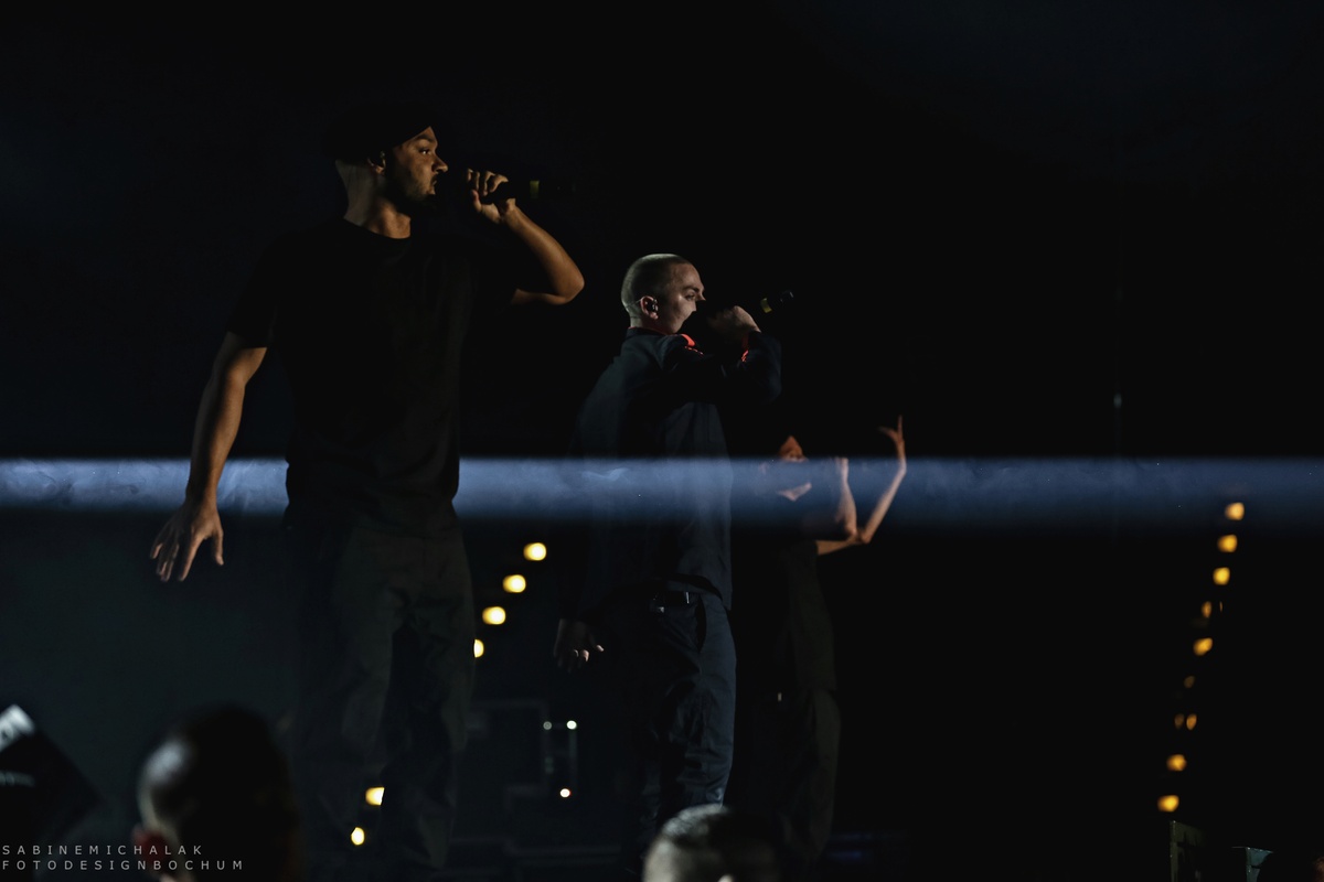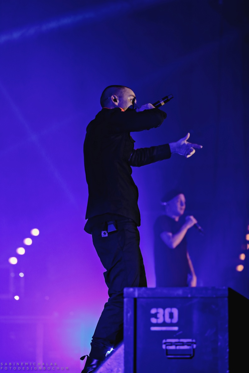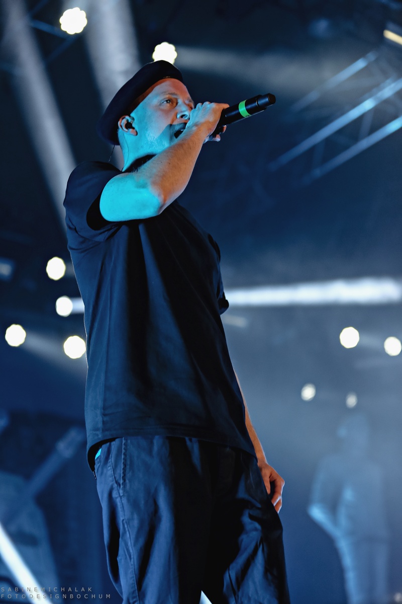 Ich war für euch gestern in Essen mit dabei und konnte mich selber davon überzeugen, wie die Berliner die ausverkaufte Grugahalle zum Toben brachten. Unter dem Motto “ Hurra die Welt geht immer noch unter“, tourt die Hip-Hop-Formation zur Zeit durch die Hallen des Landes und fährt wie immer scharfe Geschütze auf. Nicht nur, dass DJ Craft auf dem Geschützturm einer riesengroßen Panzerattrappe, umgeben von ebenfalls überdimensionalen Soldatenstatuen, auflegte, auch für ihre Provokationen, die sie in ihre Show integrierten, wurden sie mit jubelden Zurufen gefeiert.