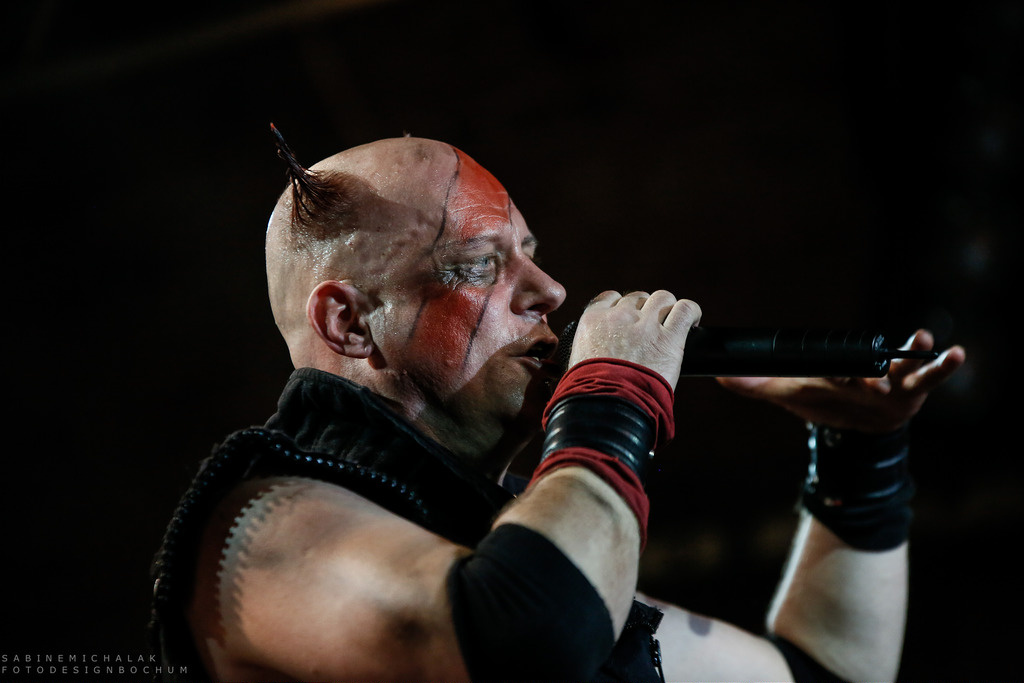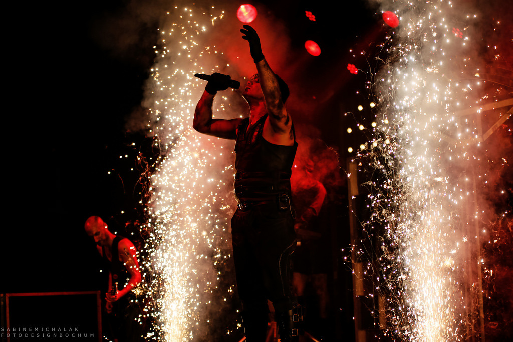[Völkerball – A Tribut To Rammstein – 26.9.2014 / Zeche Bochum]Eigentlich ist es recht schnell erklärt: Kommen die sechs Musiker um den Sänger und Frontmann René Anlauff als Völkerball (2008 gegründet) auf die Bühne, stehen die Rammstein-Hits auf dem Programm. Als Heldmaschine (2011 gegründet) singen sie eigene Texte und haben als solche mittlerweile schon drei Alben auf den Markt gebracht.
