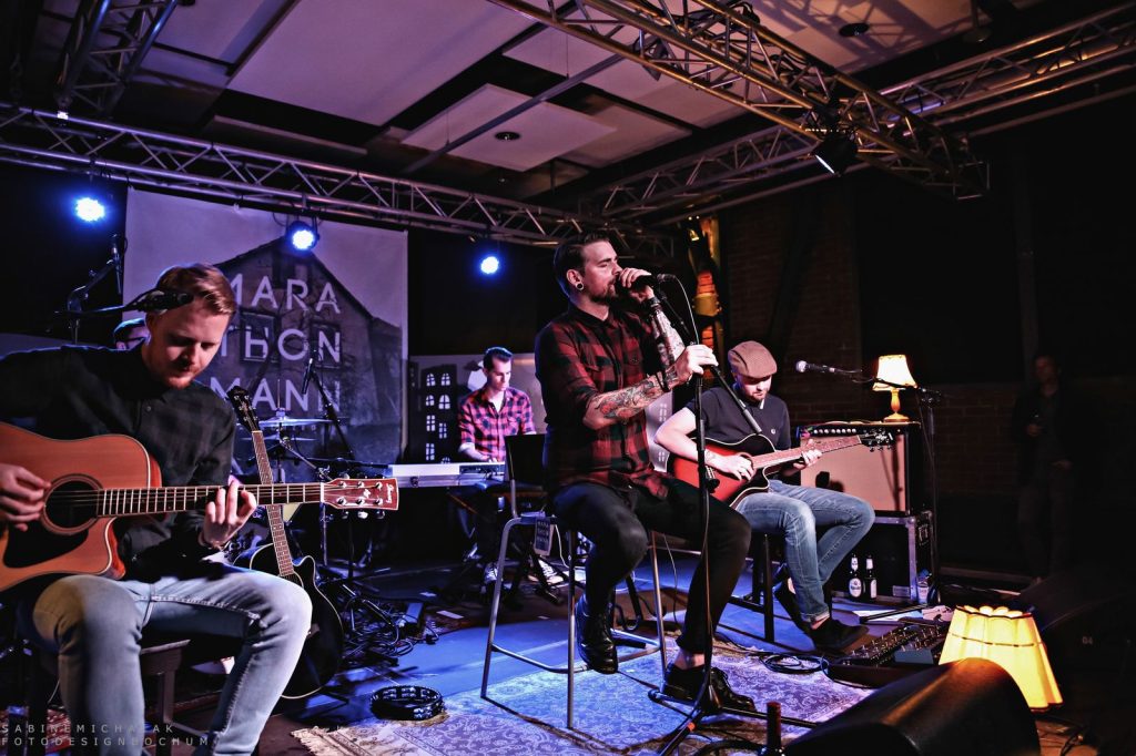Unter dem Motto „ALLES AUF NULL AKUSTIK„, drehten sie alle Regler runter und spielten ihre Lieblings-MARATHONMANN-Songs akustisch und unverzerrt. Da gab es kein Verstecken mehr hinter – wie sagen sie selber so schön „Boxen-Wänden, einer grellen Lichtshow oder hinter 120+db Lautstärke“ und diese Herausforderung haben die fünf Jungs, die sonst mit Jennifer Rostock, Casper und Co. zu harten Sounds die Bühne rocken, bestens gemeistert.
