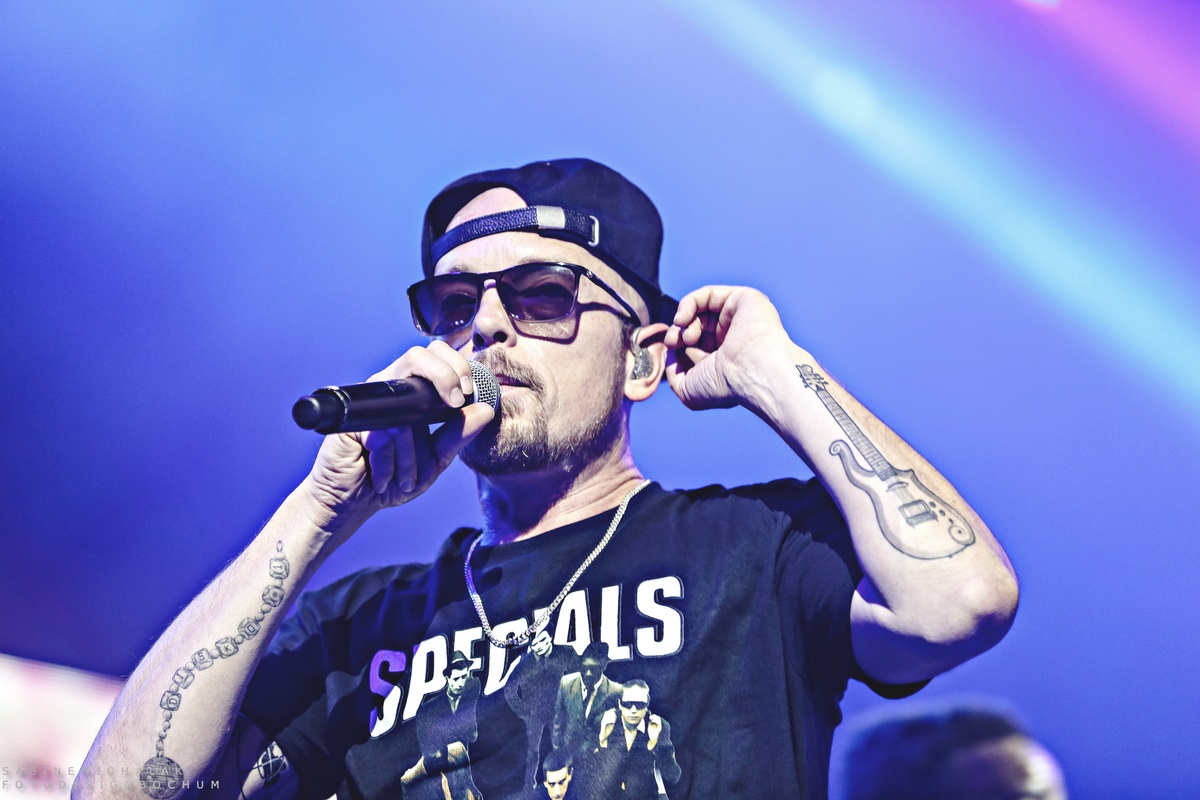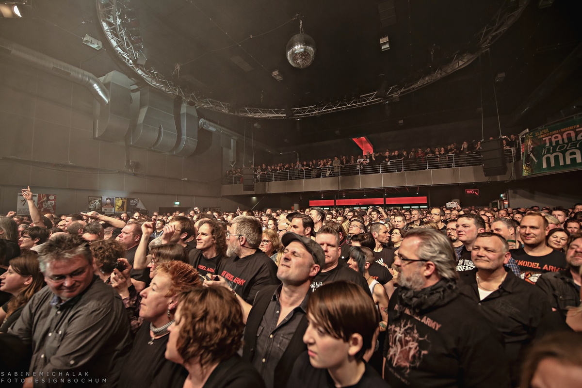 Mit dem „Preludio“ vom Vanitas Albun und „Zurück zum Beton“ direkt hintereinander, das schon aus allen Kehlen mitgesungen wurde, legten Sammy Amara, Ronald „Ron“ Hübner, Andreas „Andi“ Brügge, Ines Maybaum und Christian „Chris“ Kubczak einen grandiosen Einstieg hin. Noch bevor der große Vorhang fiel, stand die Halle dermaßen auf dem Kopf und gab sich so exzessiv dem Pogo hin, dass fast die Eskalation drohte. Somit wurde der zweite Song der Düsseldorfer „Tanzt du noch einmal mit mir?”, bis zum Konzertende Programm und mehr als wortwörtlich genommen.