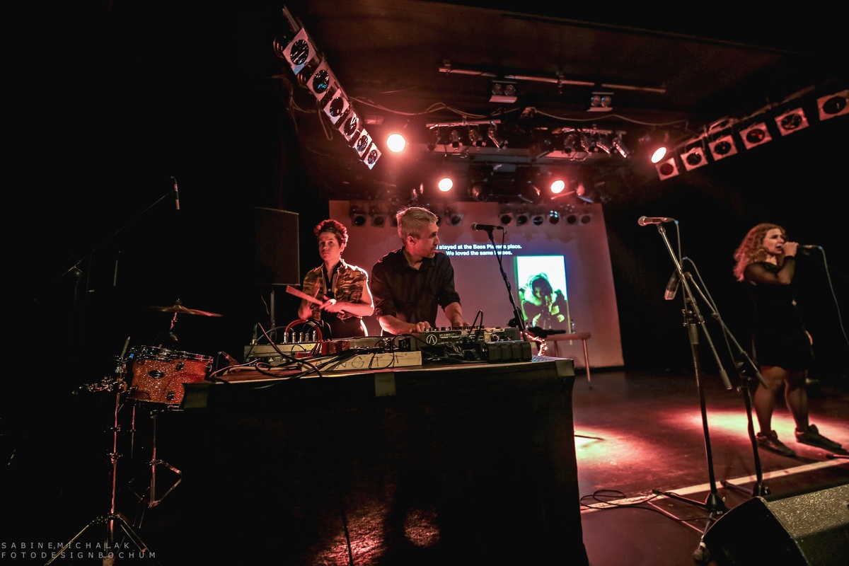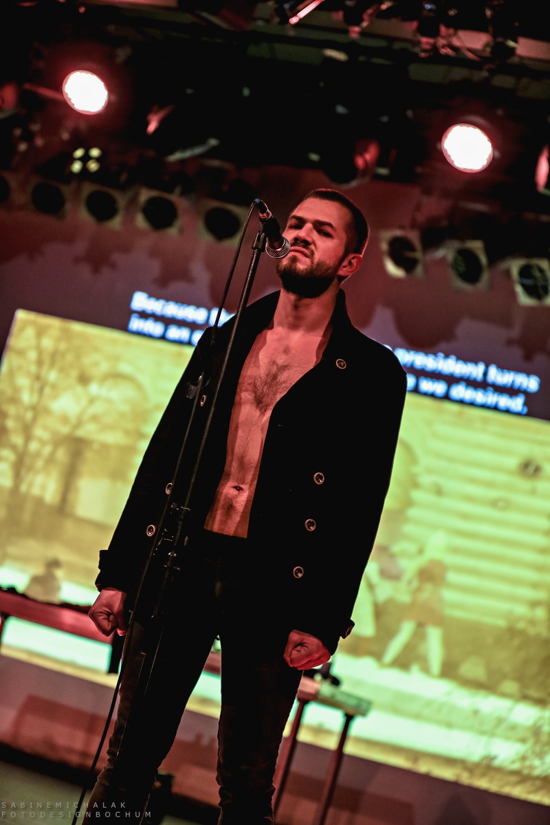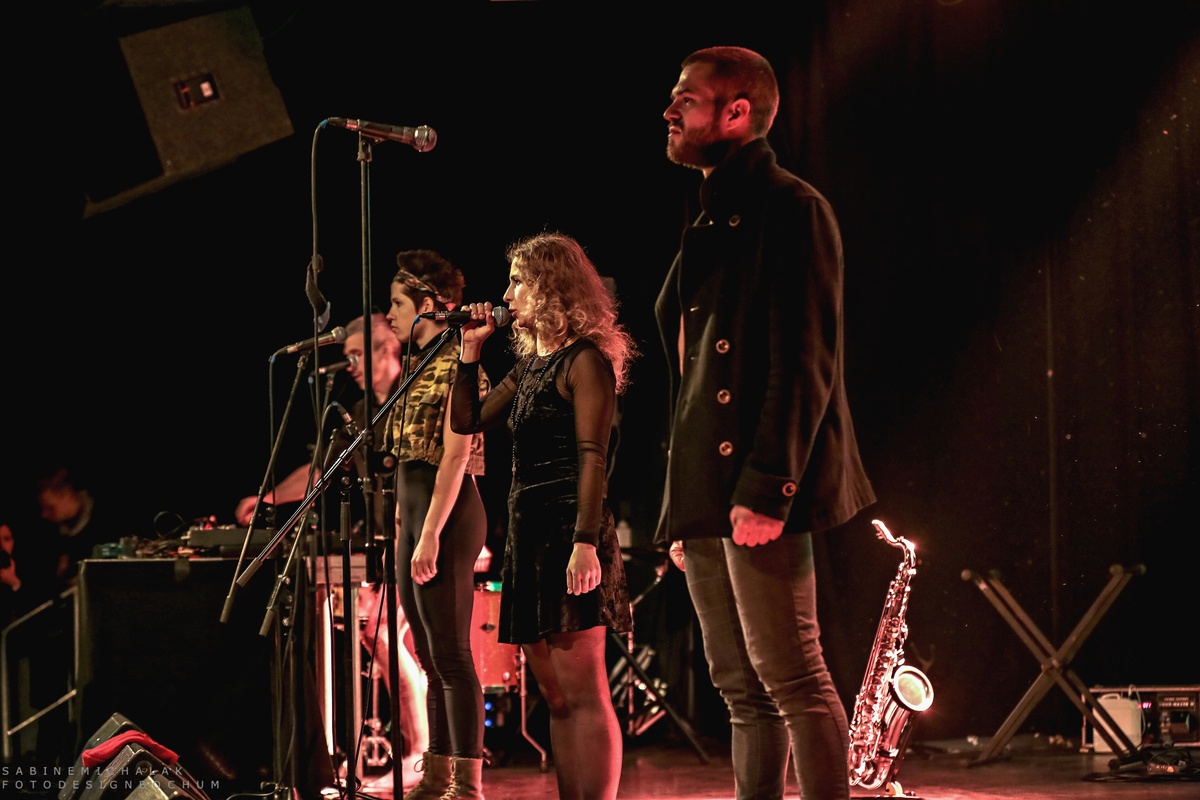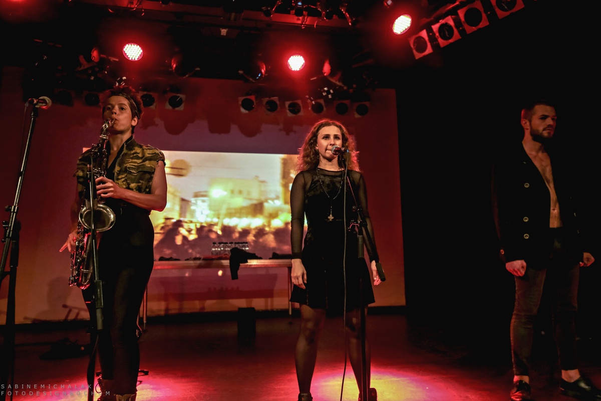 Im Hintergrund eine große Leinwand mit Videoprojektionen politischen Inhalts, boten Alyokhina und Masheka mit ihrer Stimme und Nastya Awott wahlweise am Saxofon und Maxim Awott am Keyboard ihren Gästen eine Mischung aus Dokumentation, Manifest und Proklamation, durch die sie ihre Gedanken und Gefühle mal rappend, mal punkig, aber auch mit viel Poesie zum Ausdruck brachten. Dies alles geschah mit einer Dringlichkeit und sehr energetisch, zum Teil sehr roh und minimalistisch. Die vier erlaubten sich keine Atempausen und ihren Gästen keine Denkpausen.