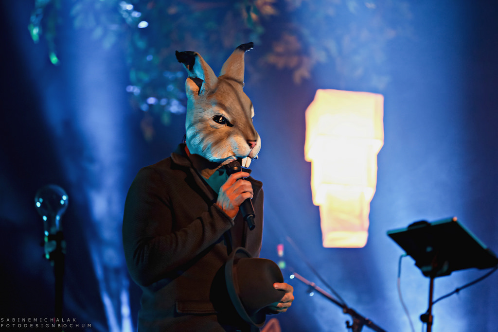Los ging es mit dem Song „Die Tiere des Waldes“, zu dem die Musiker, mit großen Tiermasken auf den Köpfen, langsam ihren “Zauberwald” betraten, die Grillen zirpten, Lampions leuchteten, Windlichter schmückten einen Baum, der Mitten auf der Bühne stand, alles wirkte seltsam entrückt, fast mystisch.
