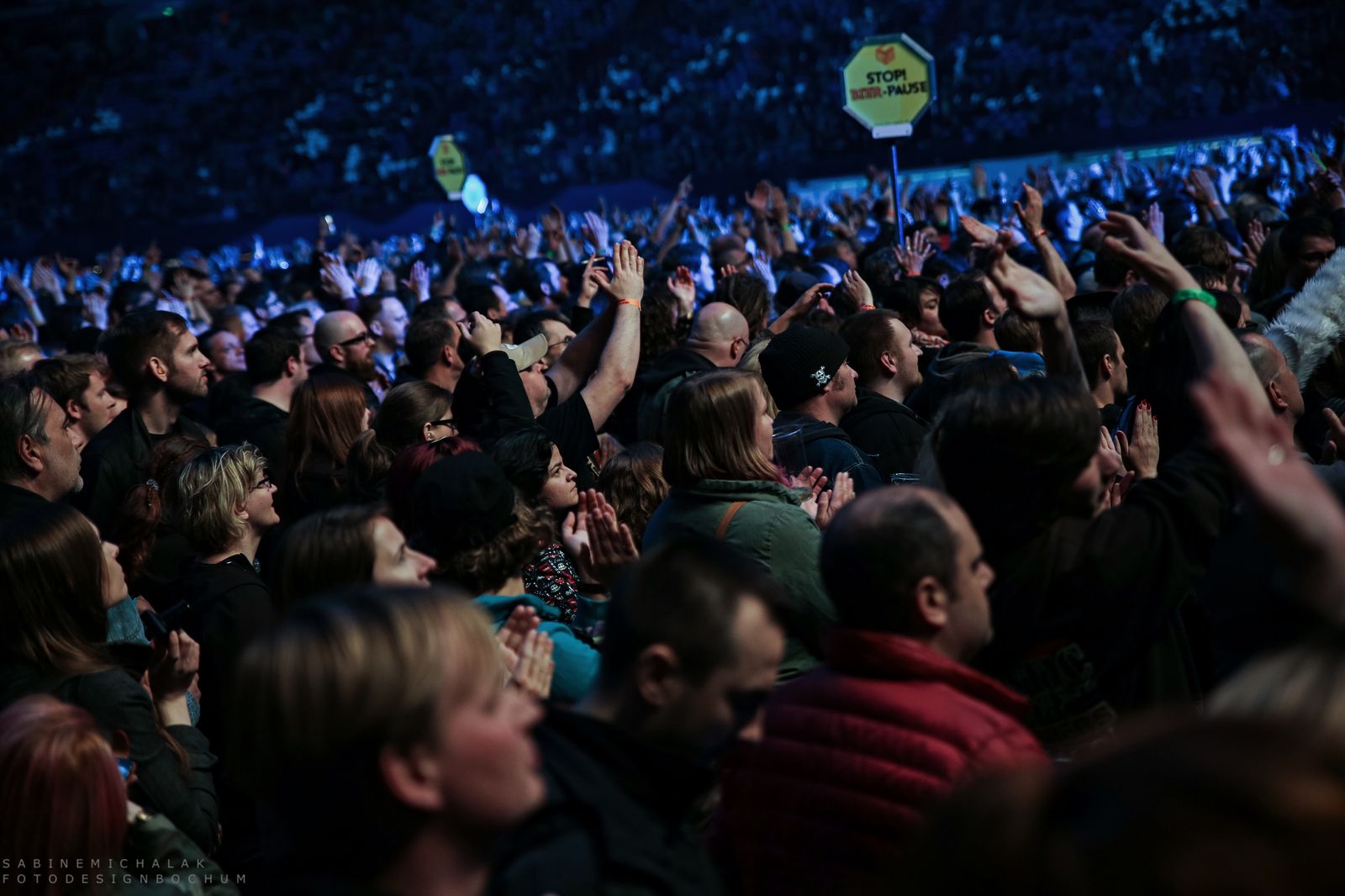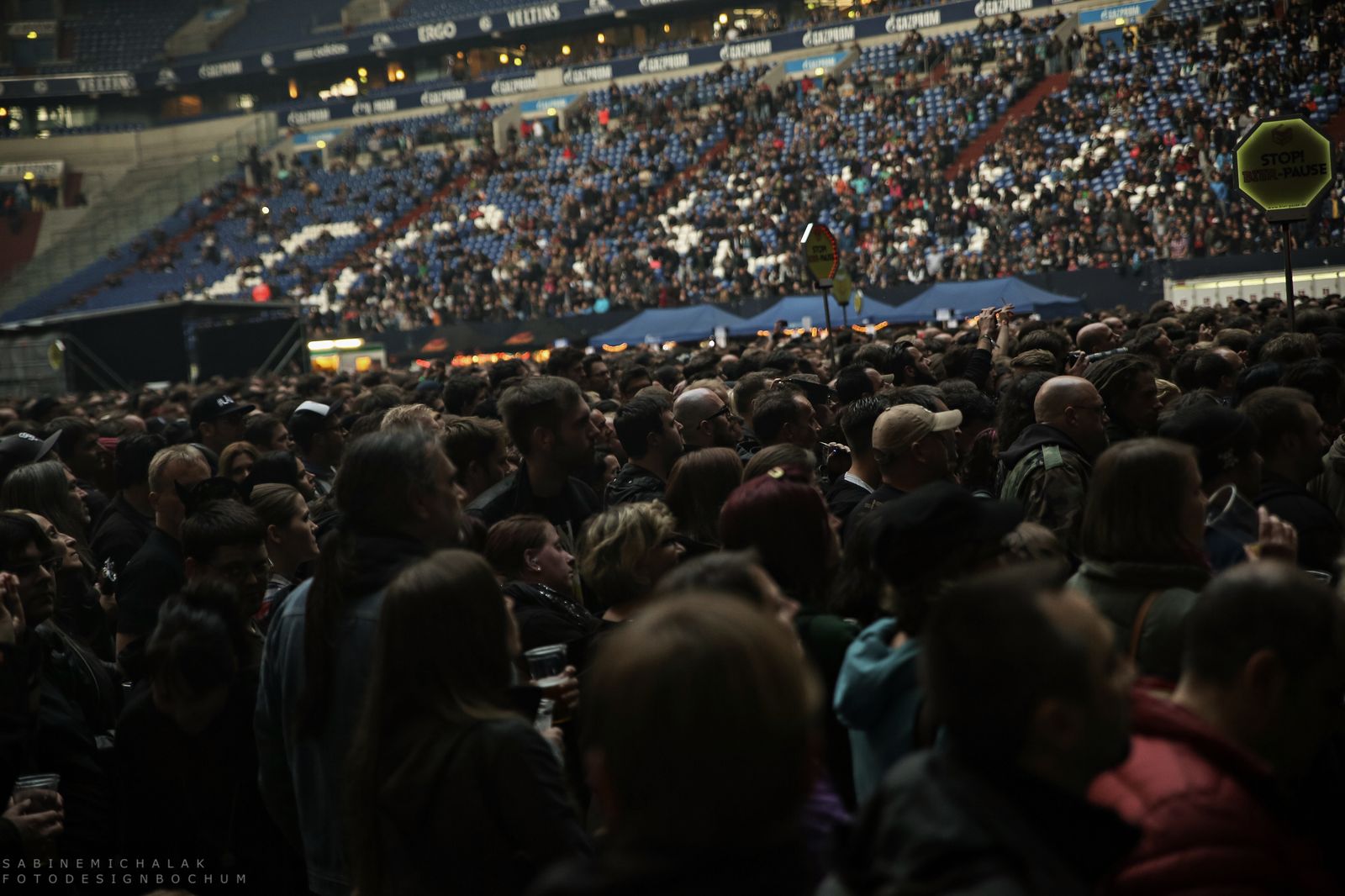 Die Konzerte fanden auf drei Bühnen statt, in derVeltins Arena auf der Big Stage, auf dem Parkplatz nebenan auf der Open Air Boom Stage und in derEmscher-Lippe Halle auf der Bang Stage. Die Wege zwischen den einzelnen Bühnen hatten es auf Dauer in sich, wer nicht gut zu Fuss war, …ich sage mal so, ich war dankbar für mein Fahrrad 🙂