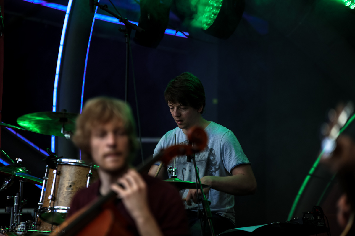 Zur gleichen Zeit betraten auch Henrik Freischlader & Band die Bühne. In „Zelt 3“ präsentierte er in einem zweistündigen stimmungsgeladenen Konzert, mit Unterstützung von Theofilos Fotiadis (Bass), Björn Krüger (Schlagzeug) und Moritz Fuhrhop (Hammond-Orgel), seinem zahlreich erschienenen Publikum Songs seines noch aktuellen Albums „House In The Wood“ und einige weitere Stücke aus seinem Repertoire.
