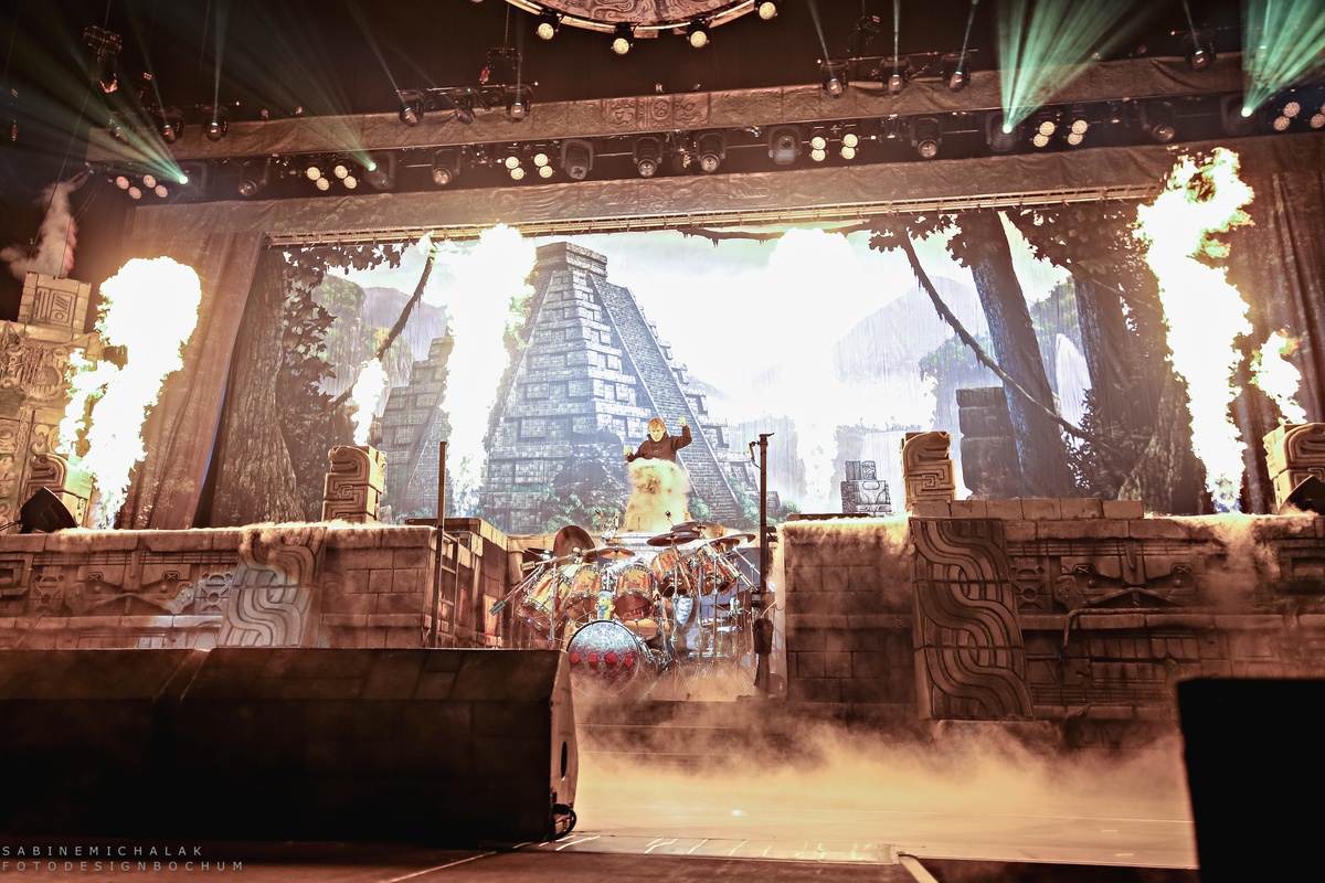Die Bühnenkulisse stellte einen Maya-Tempel dar und war angelehnt an das Artwork und Hauptthema ihres aktuellen Albums. Zu den Klassikern wurde passend der Hintergrund ausgetauscht, so dass immer alles stimmig und rund war.
