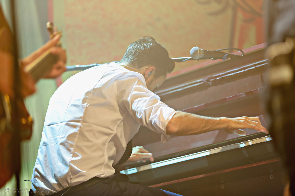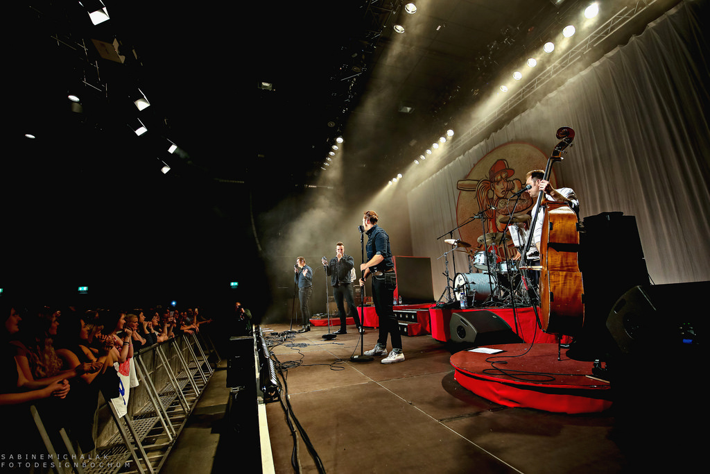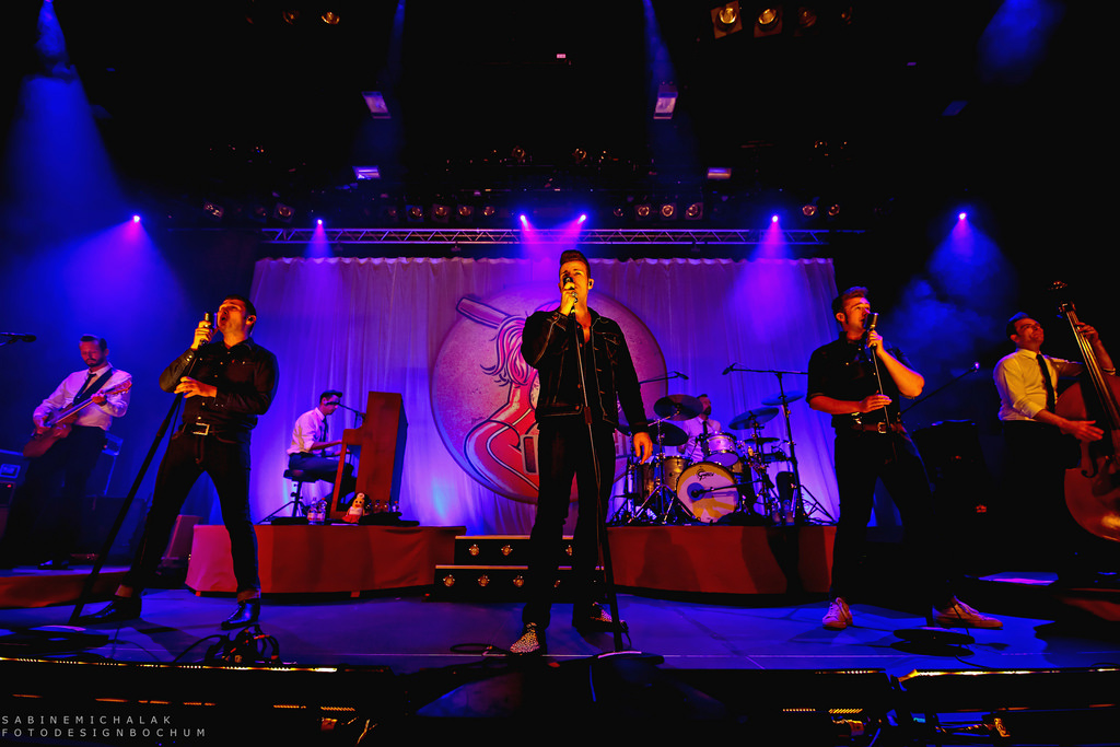 Die drei charmanten Entertainer Sam (Sven Budja), Digger (Rüdiger Brans) und Basti (Sebastian Raetzel) wurden gestern Abend von ihrer vierköpfigen Liveband unterstützt : Lars Vegas an der Gitarre, Klaas Wendling am Kontrabass, Jan Miserre am Klavier und Tomas Svensson am Schlagzeug. Gemeinsam nahmen sie ihre Gäste, von denen sich viele tatsächlich mächtig herausgeputzt hatten, mit auf eine wunderbar nostalgische Reise in alte Swing-Zeiten. Es wurde im wahrsten Sinne des Wortes das Tanzbein und die Hüfte geschwungen, mit den Fingern geschnipst, professionell mit den Knien gewackelt und sich gekonnt durch die aufgetürmten Haare gestrichen, wie die großen Rock ’n‘ Roller höchstpersönlich. Hier sind die Fotos: