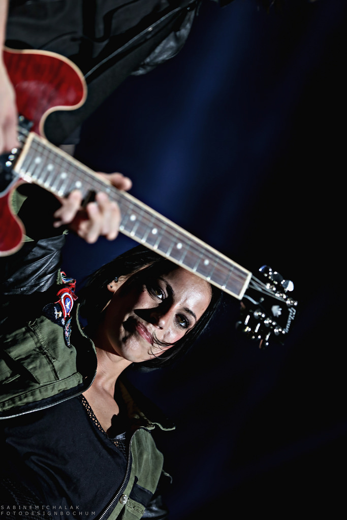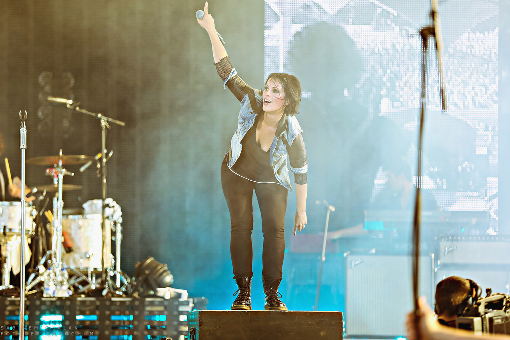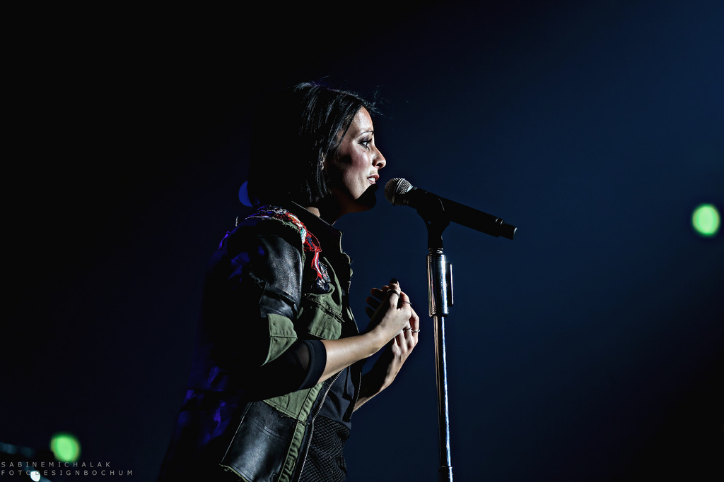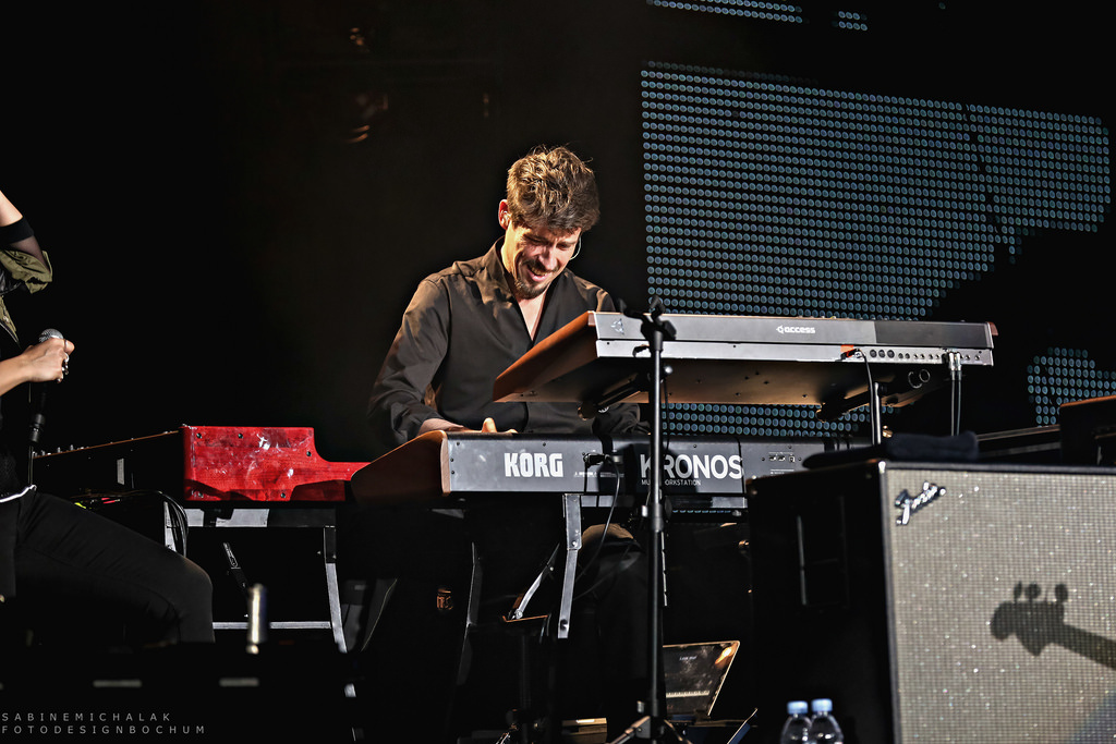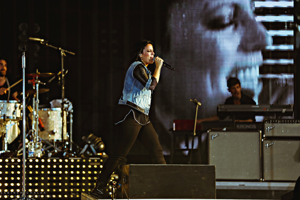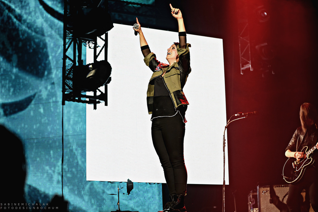 Gesungen von einer unglaublich gut gelaunten Stefanie Kloß, die vom ersten Song an ein wunderbarers Strahlen im Gesicht hatte und mit ihrer unverwechselbaren kraftvollen, aber auch gefühlvollen Stimme, jeden Song so von Herzen und uneingeschränkt ehrlich rüberbrachte, dass sie ihr Publikum mit jedem gesungenen Wort sofort erreichte. Sie war die treibende Kraft des Abends und das Verbindungsglied zwischen sich, ihren vier Jungs auf der Bühne ( ein Keyboarder unterstützt das Quartett auf ihrer Tour) und dem Publikum. Von Anfang an harmonierte alles, ein perfektes Zusammenspiel. Wie singen Silbermond so schön, “Wann reißt der Himmel auf?” und die Antwort gab es am Samstagabend in Dortmund.